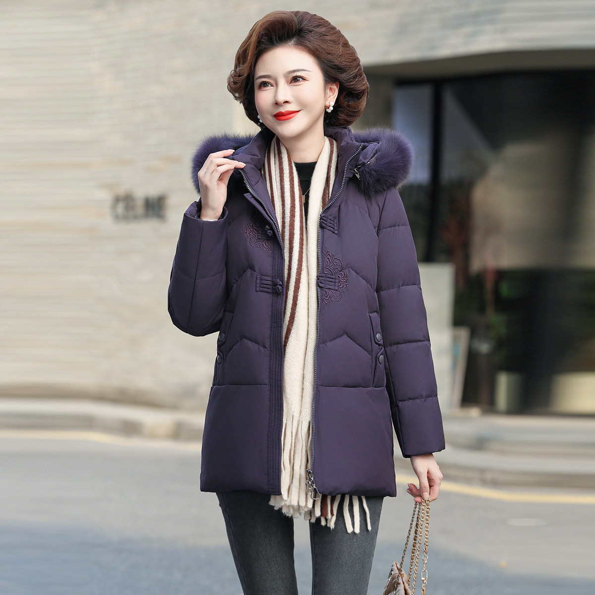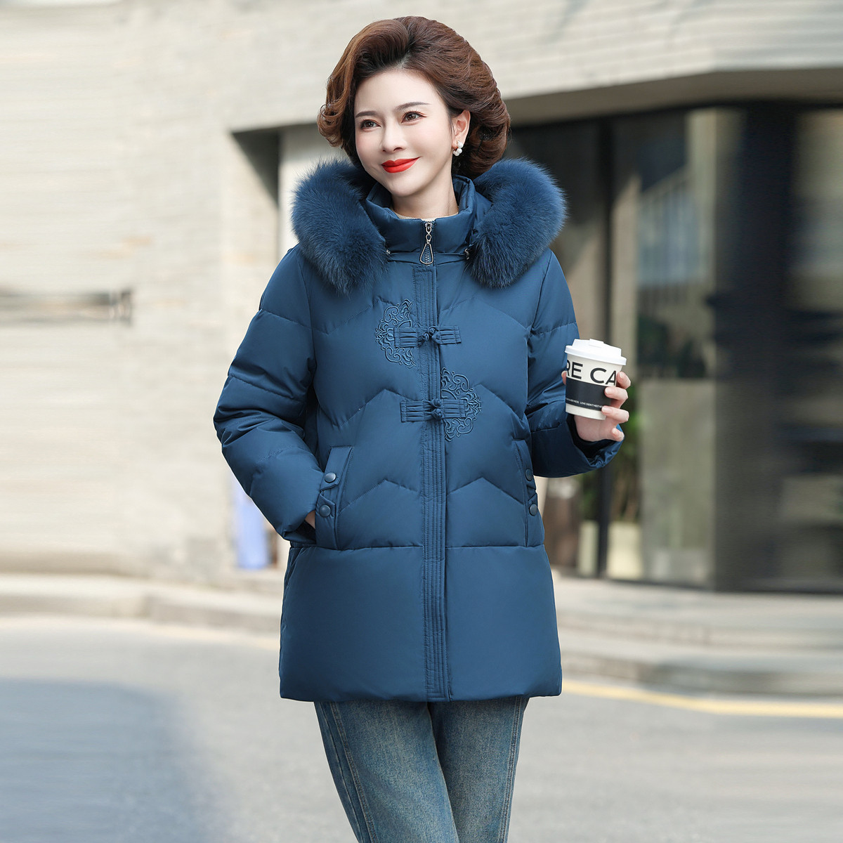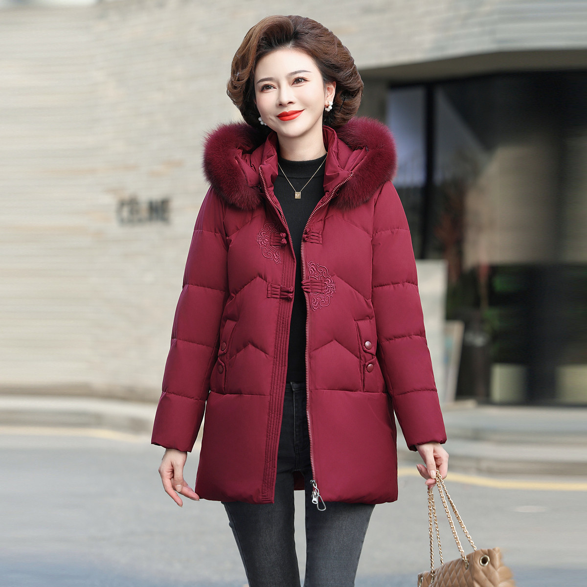 雪中飞2025冬新款女士妈妈款大狐狸毛领羽绒服国风潮流洋气百搭