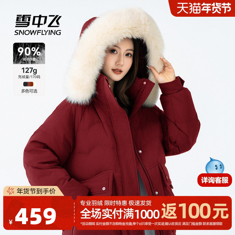 雪中飞2025冬新款女士中长狐狸毛领羽绒服温柔公主风保暖户外女