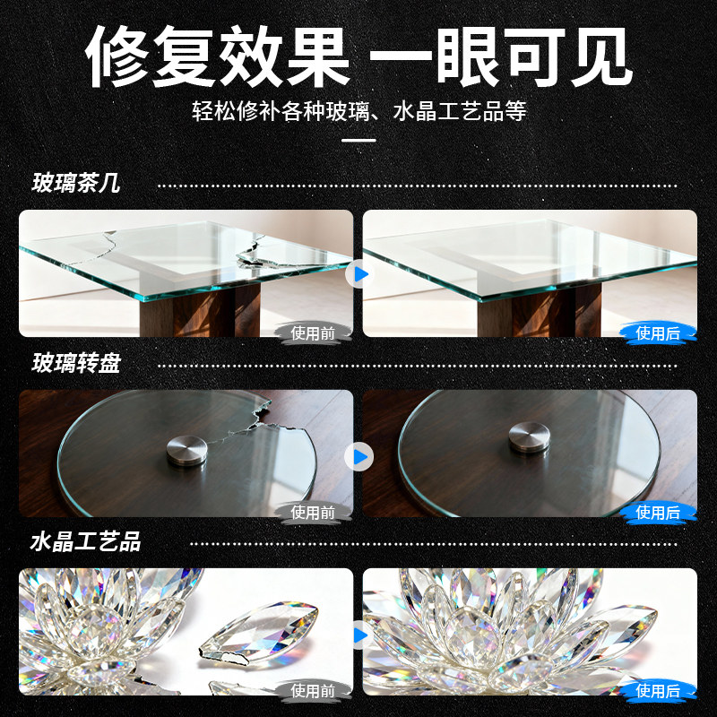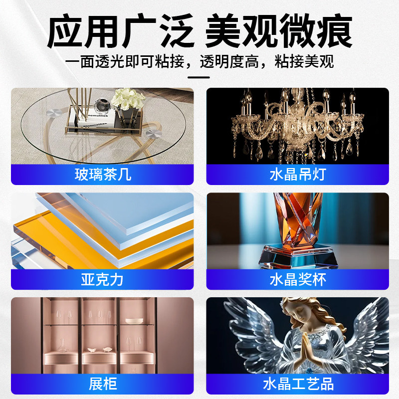 uv无影胶玻璃专用紫外线光固化亚克力板钢化玻璃转盘茶几金属水晶工艺品奖杯吊灯快干高透粘合剂强力无痕胶水