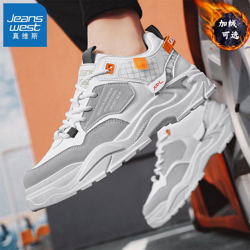 海澜之家男鞋小白鞋秋冬季鞋子男真皮加绒增高休闲保暖棉鞋运动鞋