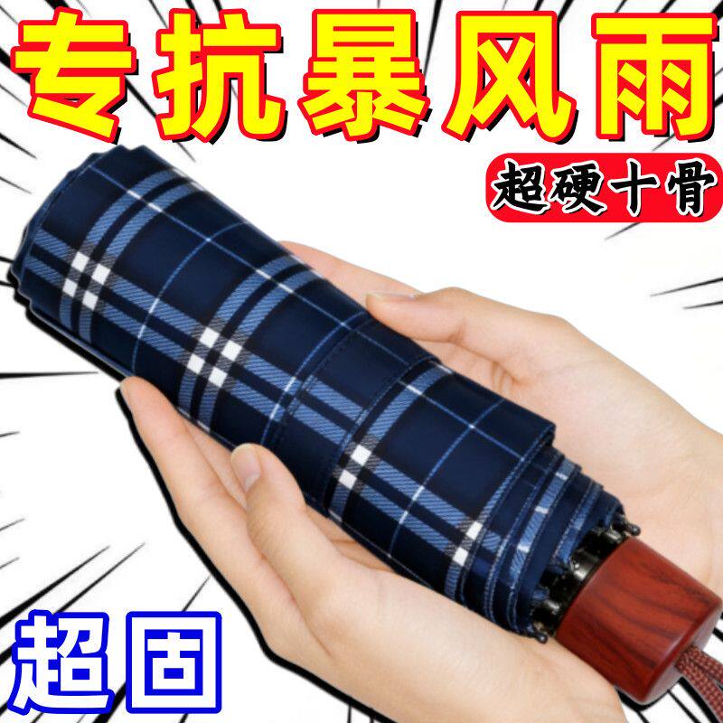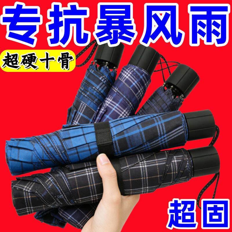 十骨加大雨伞双人三人大号折叠男女格子伞商务伞手动抗暴雨长柄