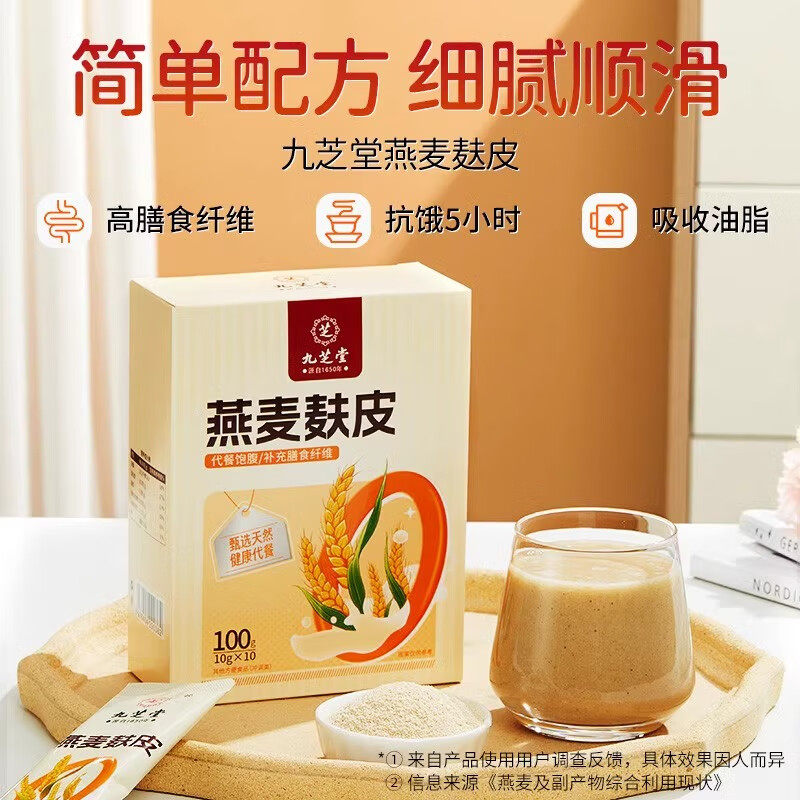 九芝堂燕麦麸皮高纤燕麦早餐即食冲饮无糖低脂代餐饱腹官方旗舰店