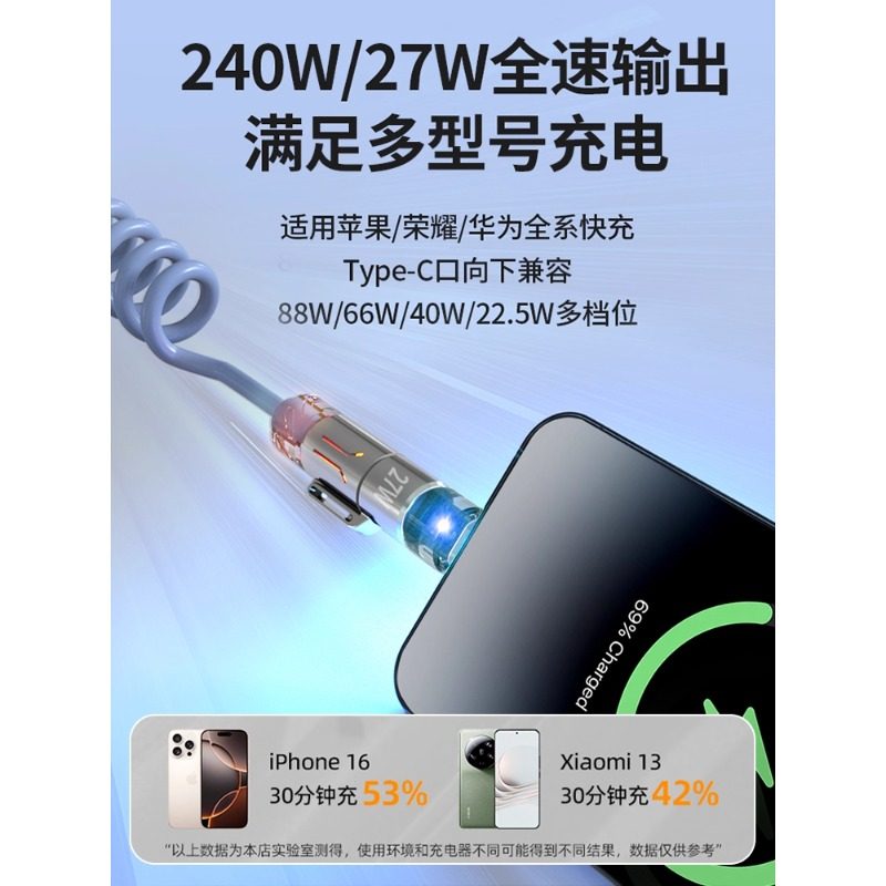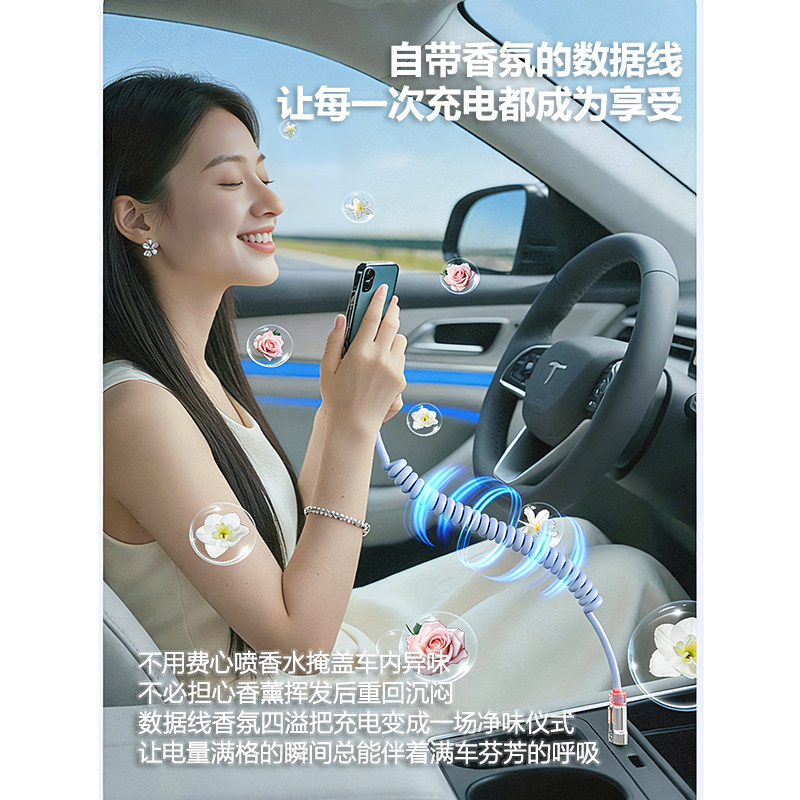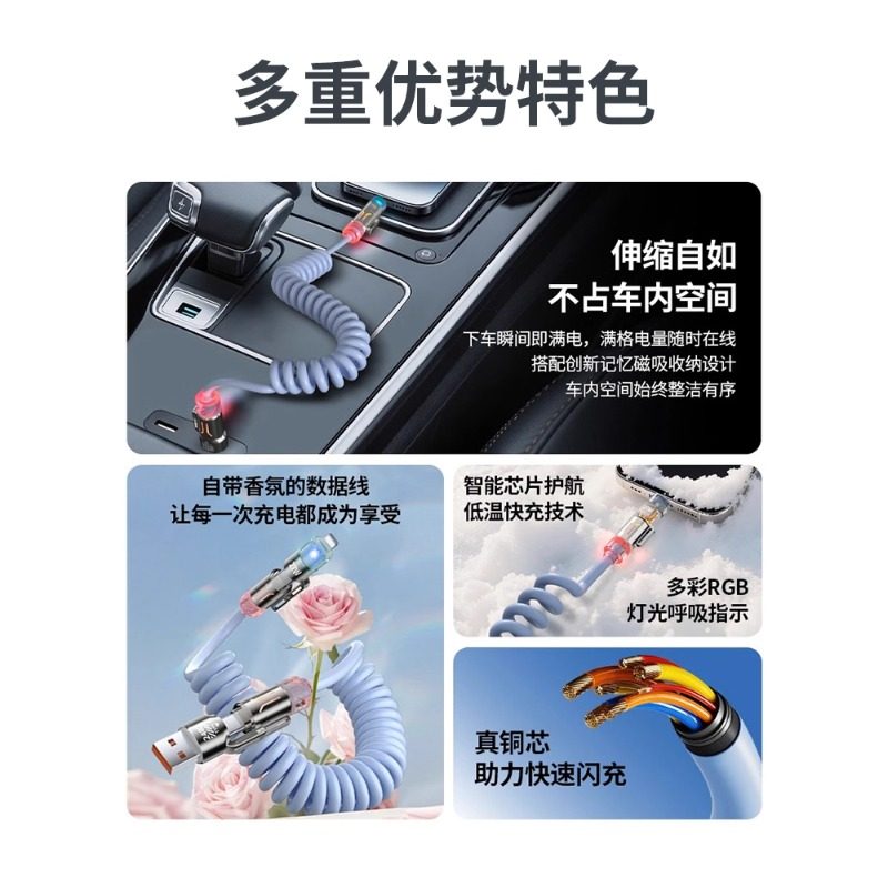 适用于车载CarPlay投屏充电器线百度carlife四合一弹簧快充数据线自带香薰汽车机导航互联苹果小米华为Hicar