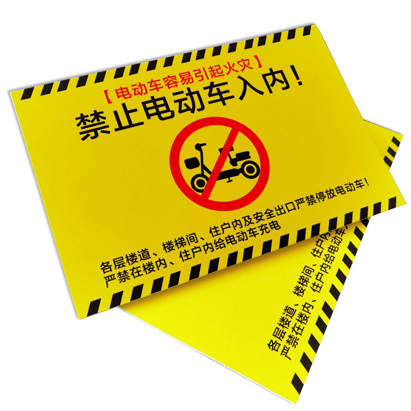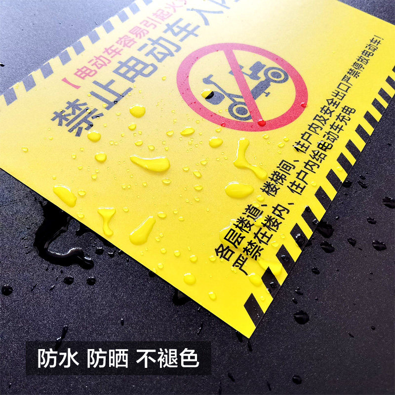 禁止电动车上楼警示标识贴纸物业小区楼道严禁停放电动车上楼充电进入电梯消防安全提示不干胶防水标识贴定制