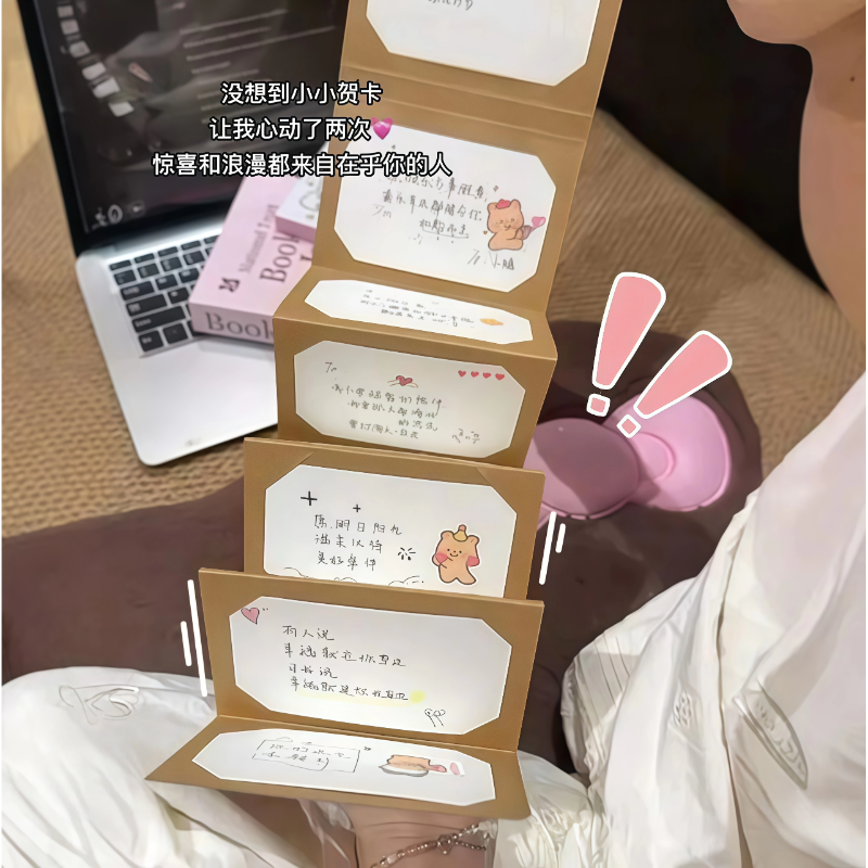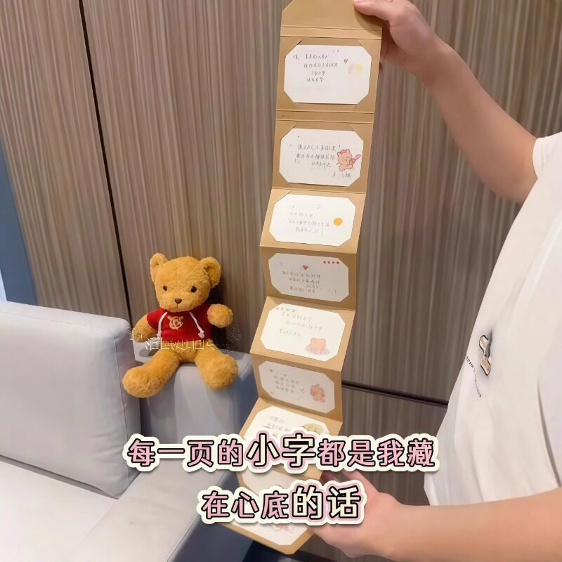 DIY风琴贺卡抽拉式卡片包送情侣七夕情人节创意礼物送闺蜜朋友