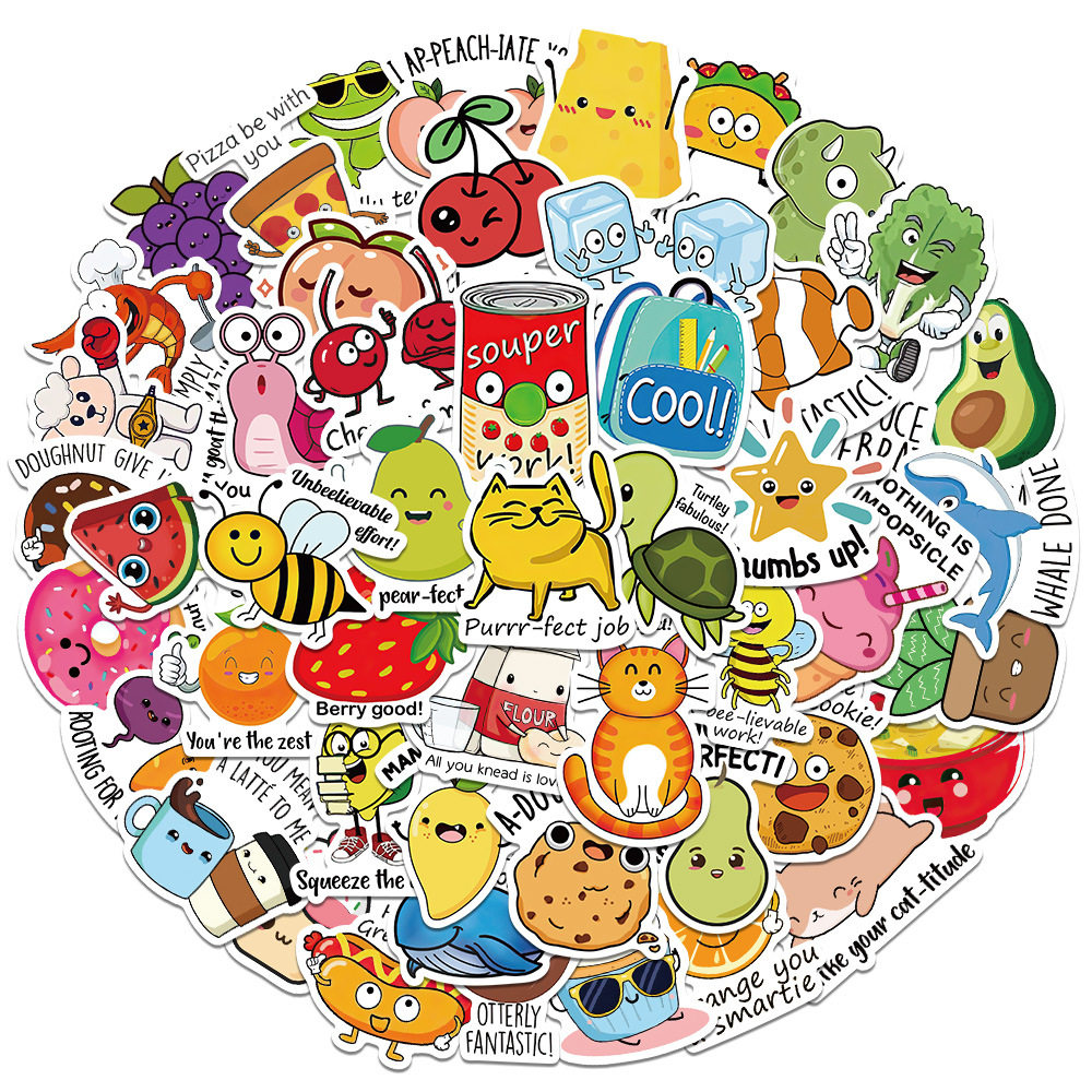 50张趣味可爱益智儿童贴纸DIY行李箱冰箱拉杆箱头盔自行车早教贴