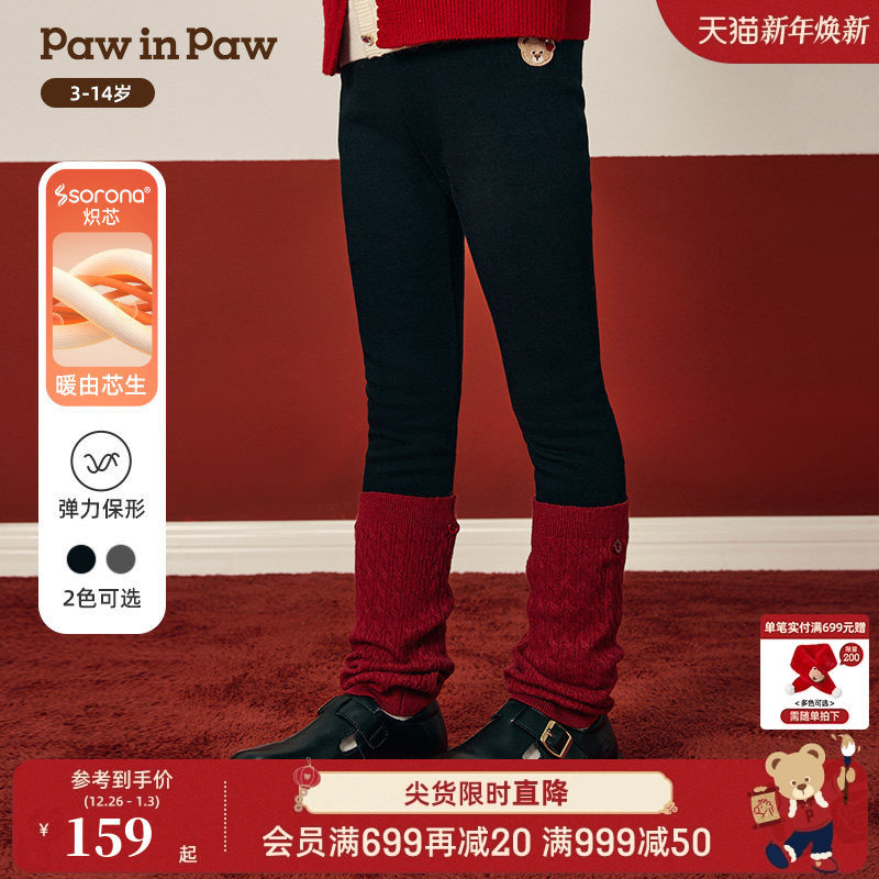 【索罗娜】PawinPaw卡通小熊童装25年冬季新款女童弹力加绒打底裤