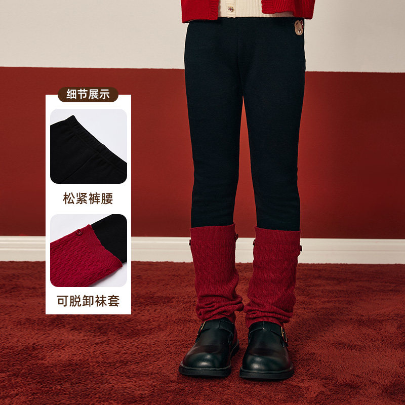 美妙音阶女童打底裤儿童保暖秋裤外穿加绒加厚长裤中大童紧身裤子