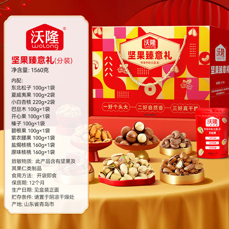 【k姐推荐】沃隆坚果臻意礼1.56kg礼盒年货节过节送礼坚果健康