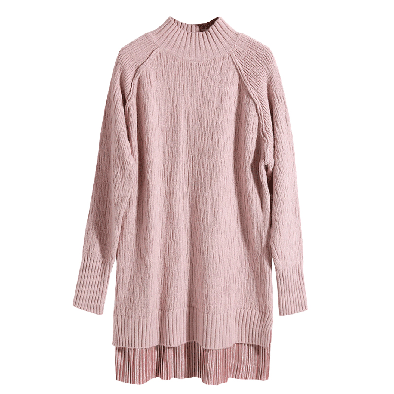 加厚宽松毛衣裙 丝绒拼接 秋冬打底外穿皆可