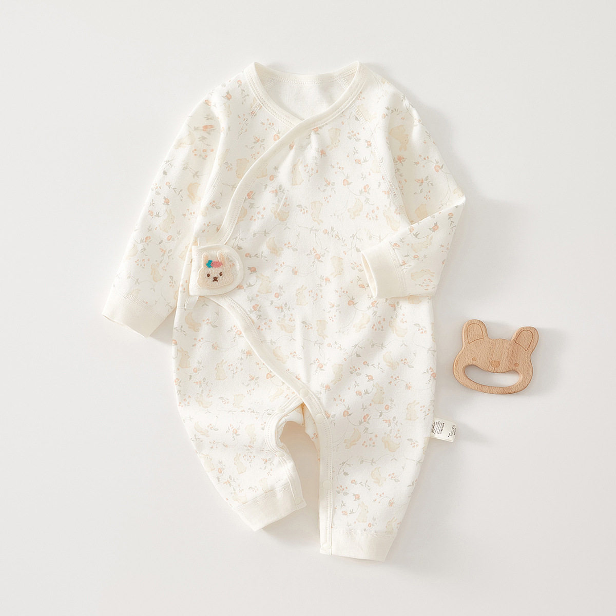 婧麒新生婴儿衣服春秋季a类纯棉a类连体衣满月宝宝长袖偏开和尚服
