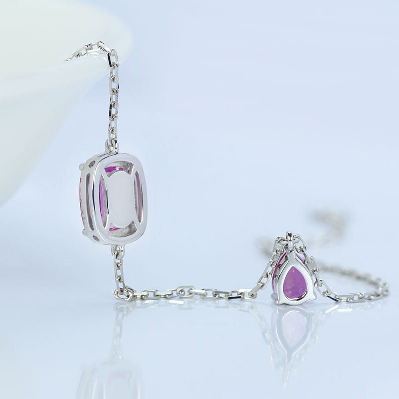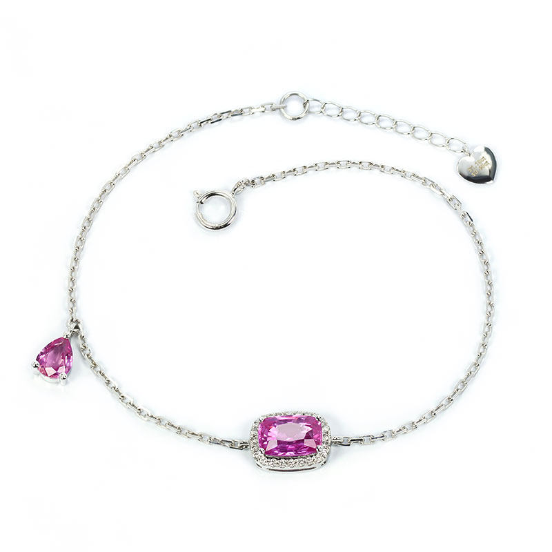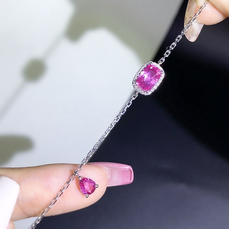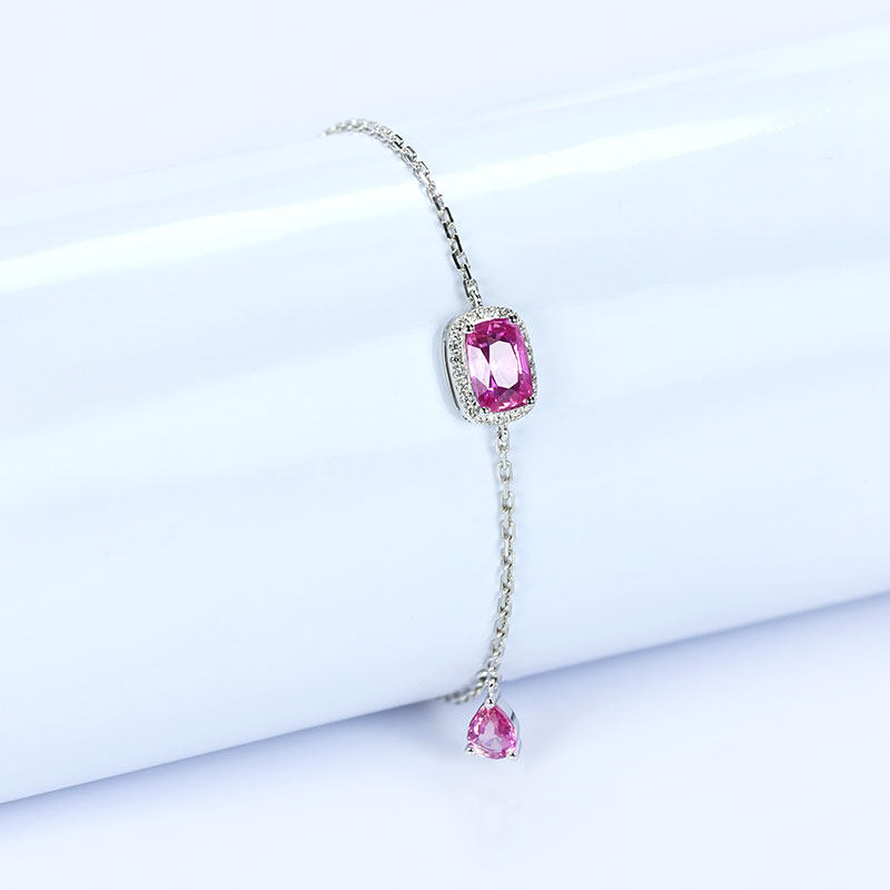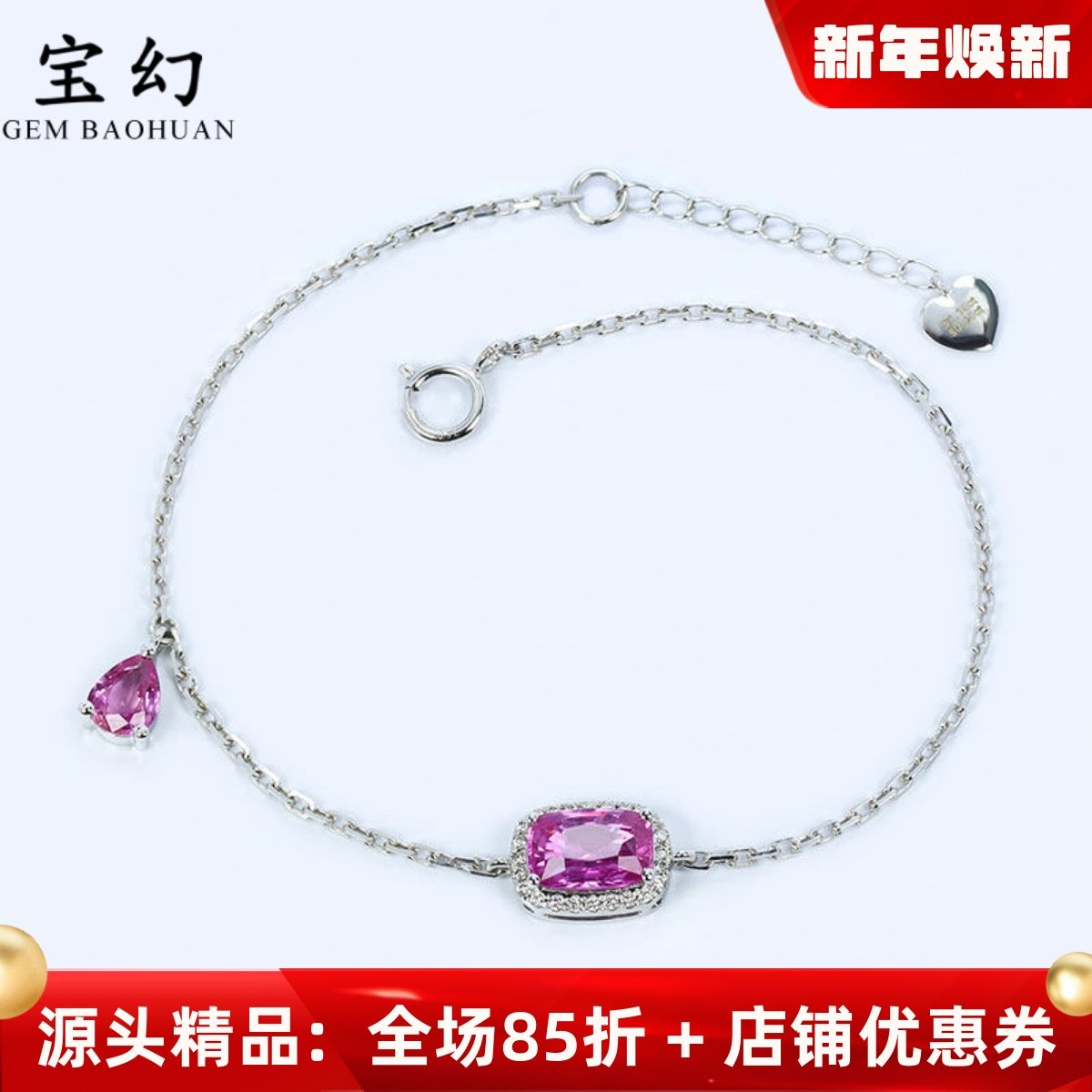 G18K白金1克拉无烧粉色蓝宝石手链 天然帕帕拉恰钻石女款手饰双证