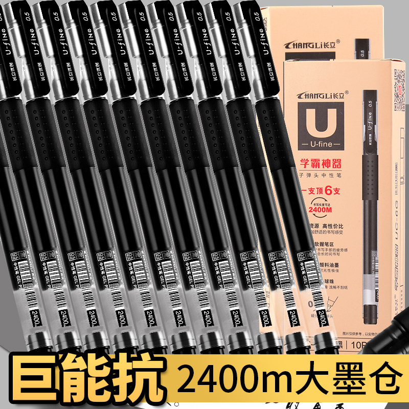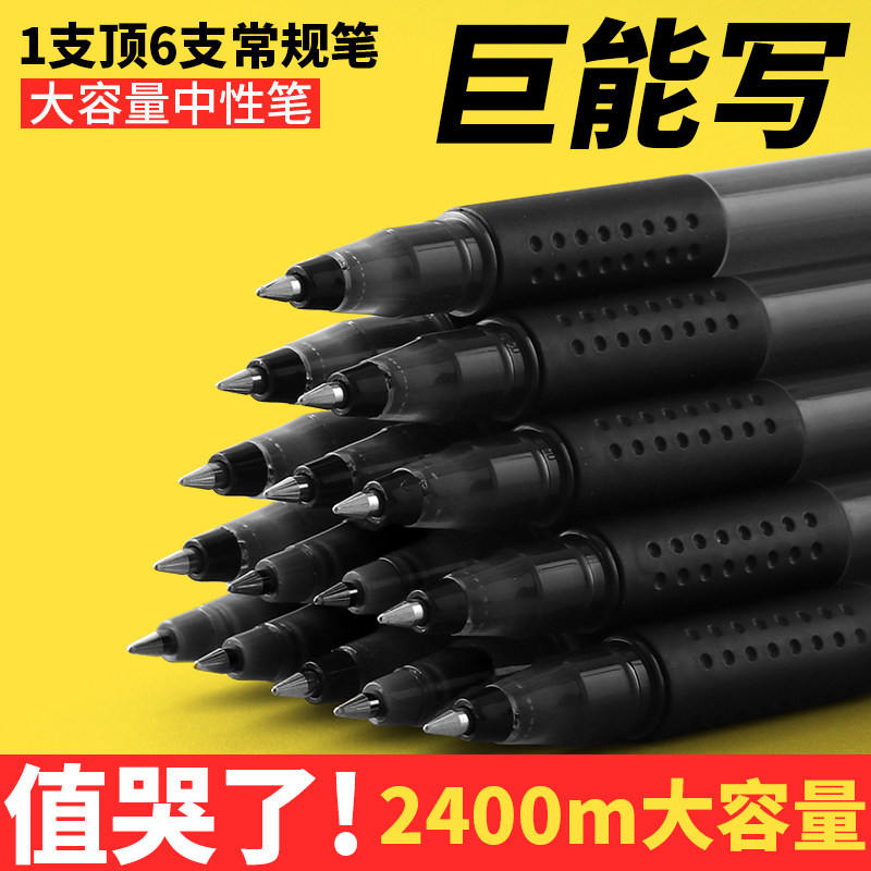 长立巨能写速干签字笔学生用学霸神器黑色碳素笔0.5中性笔大容量