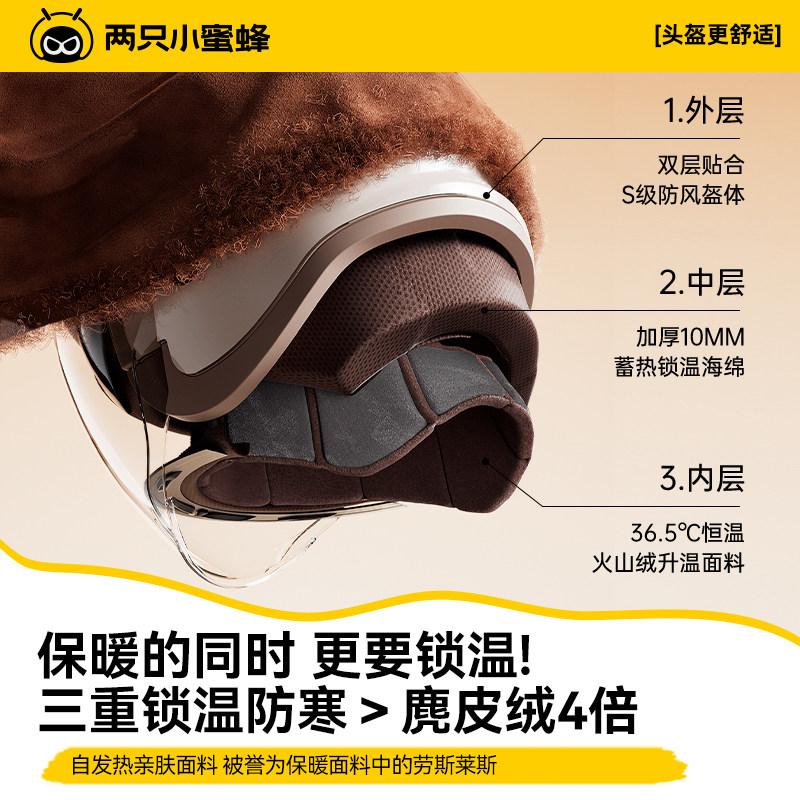 两只小蜜蜂3c认证电动摩托车头盔男女冬季保暖全盔2025新款安全帽