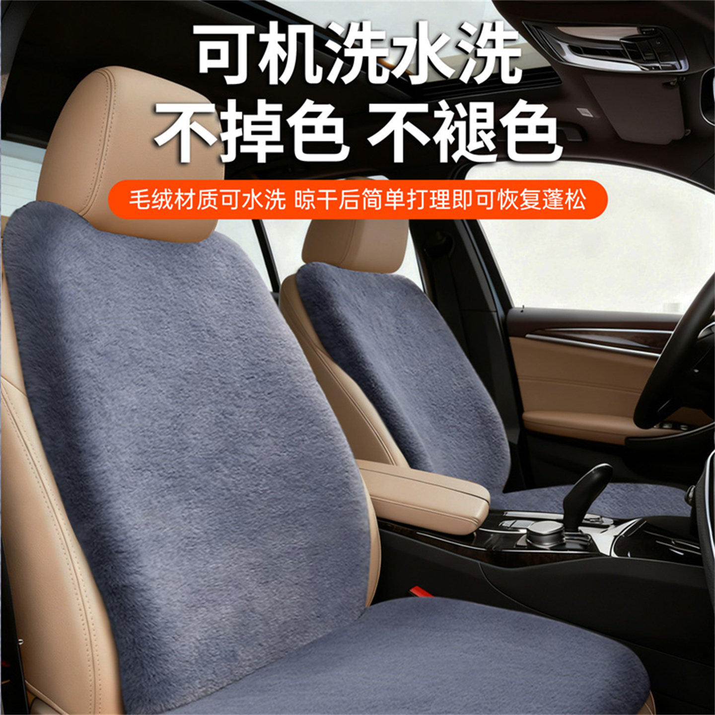汽车坐垫冬季兔毛绒单座无靠背三件套羊毛短毛保暖防滑加厚通用垫