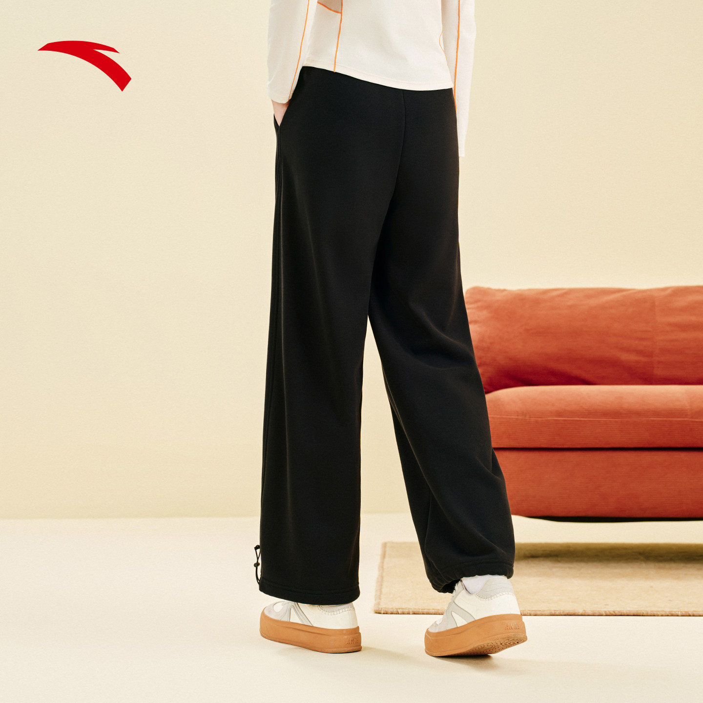 安踏自由裤丨直筒裤女冬季宽松休闲加绒阔腿裤运动长裤162547311N