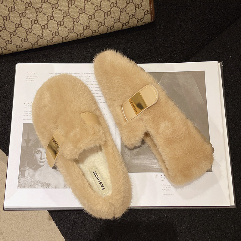 勃肯玛丽珍毛毛鞋女外穿加绒保暖水貂毛秋冬2025豆豆棉鞋毛绒鞋子