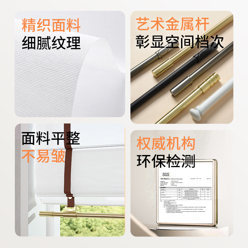客厅卧室书房飘窗皮革金属杆配饰高端罗马帘