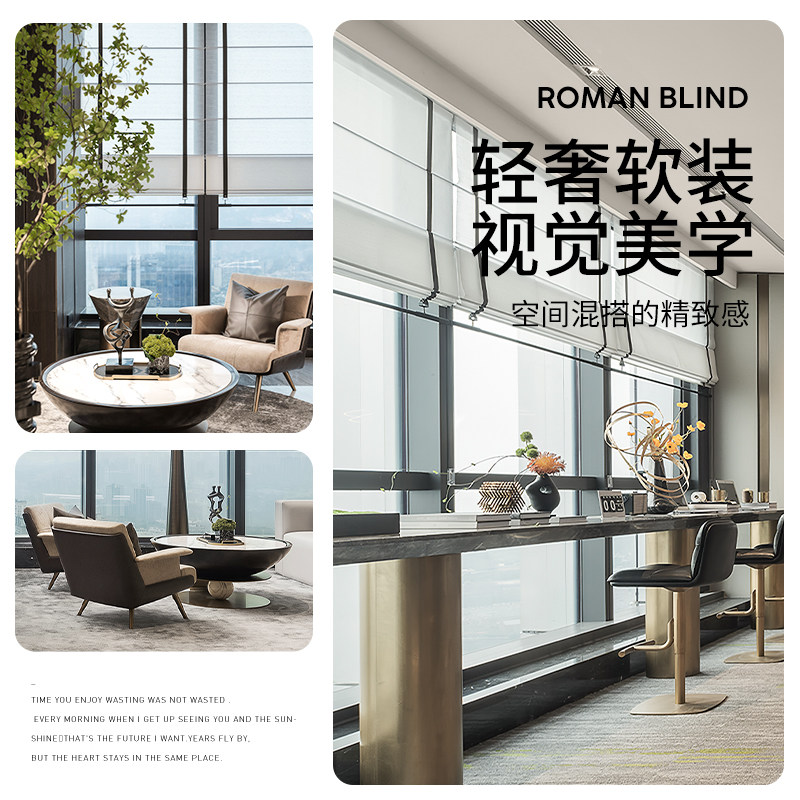 贵品罗马帘皮革布百叶升降卷拉式窗帘民宿客厅卧室书房遮光折叠帘