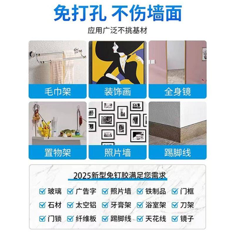 强力高粘免钉胶高粘度粘墙面金属墙壁镜子瓷砖踢脚线卫生间置物架贴墙专用防水家用胶多功能粘得牢免打孔胶水