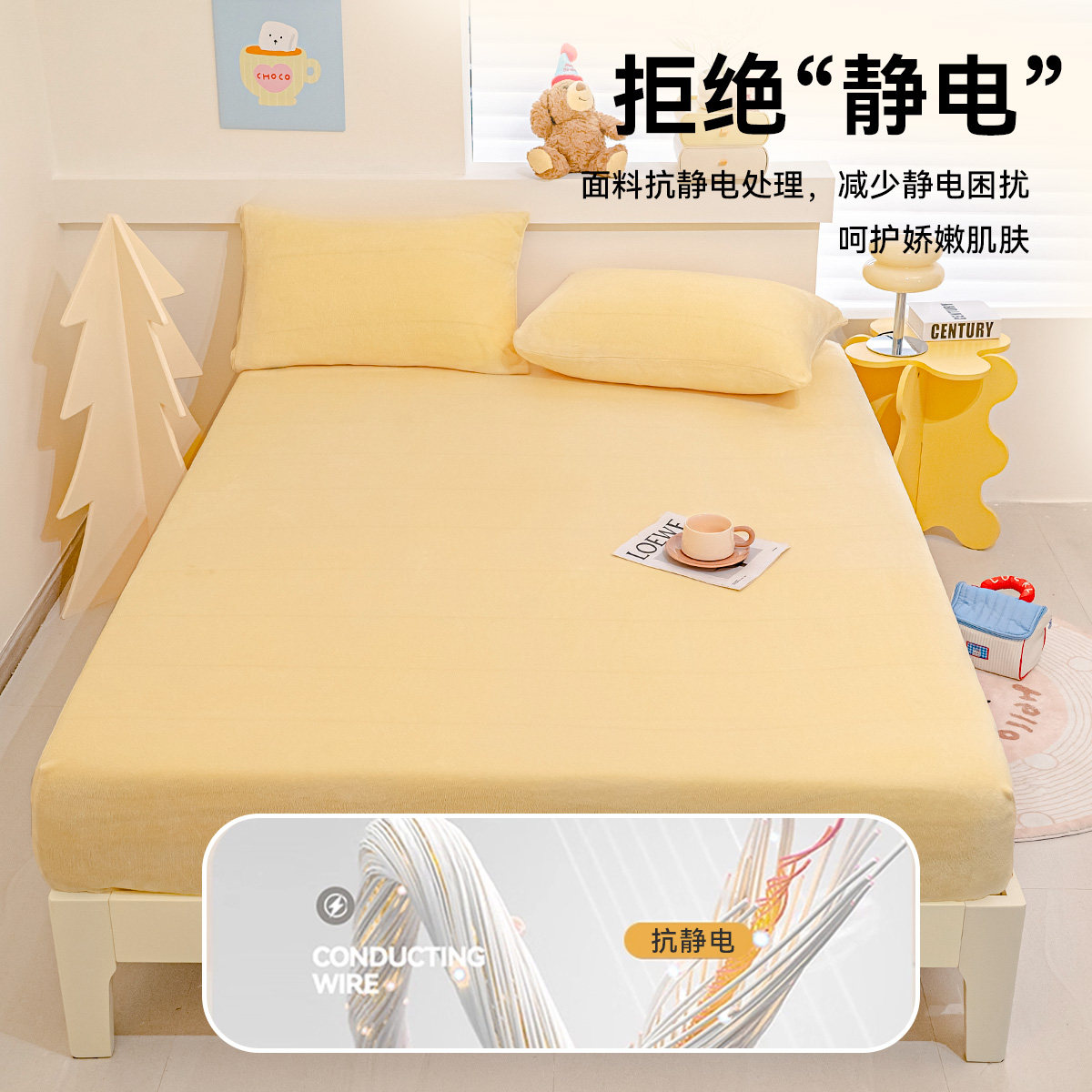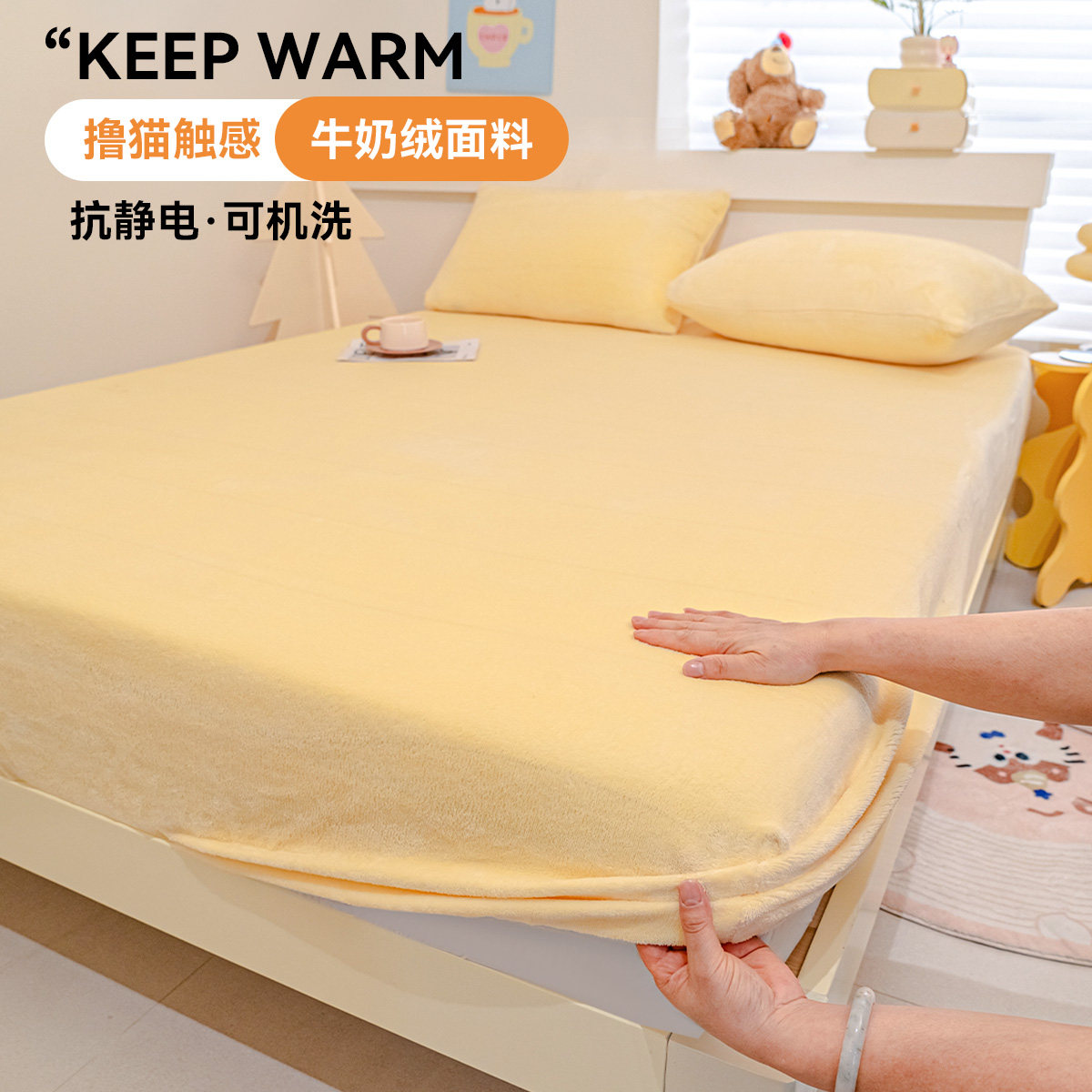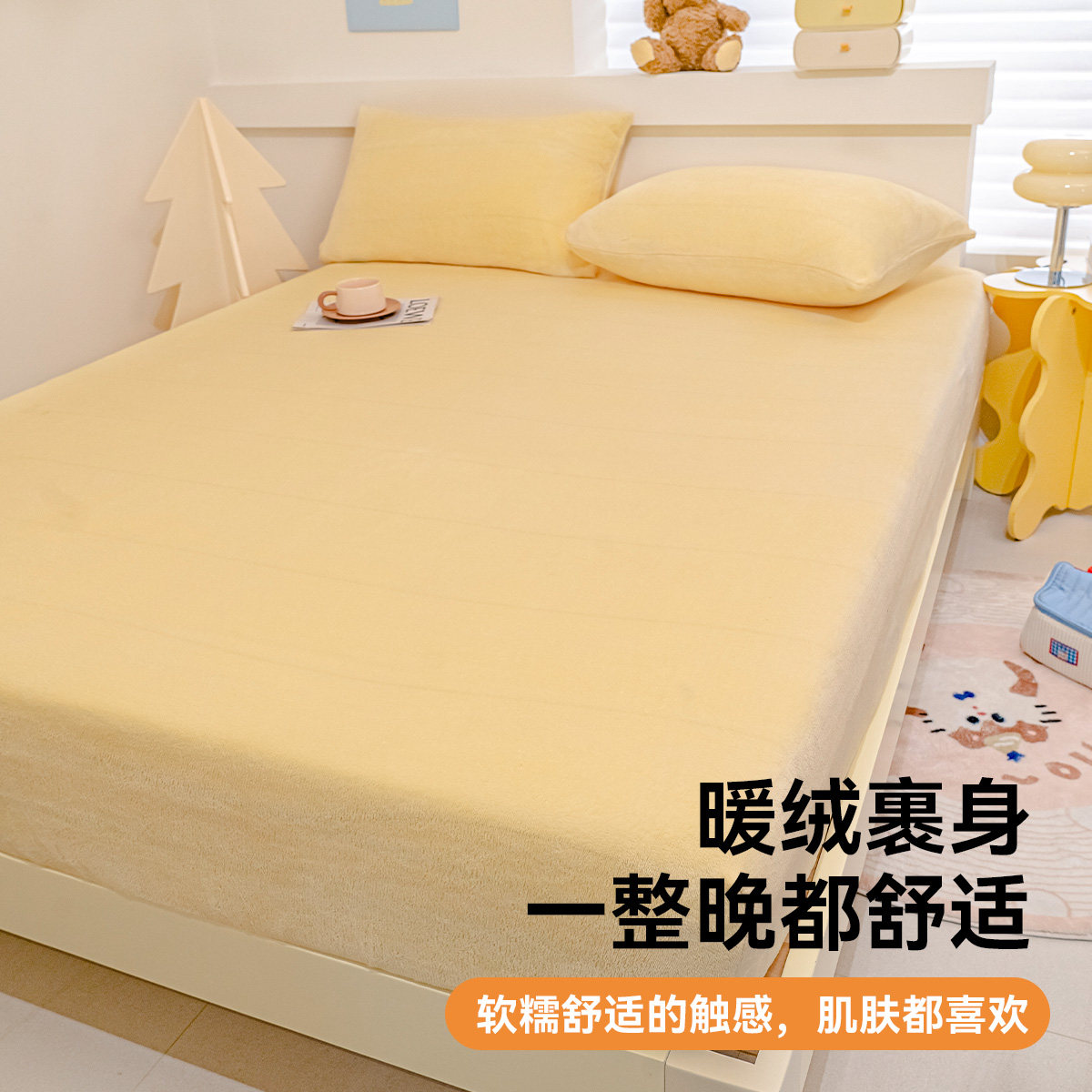 奶油色牛奶绒床笠加厚保暖纯色床单床垫保护罩防尘套2025秋冬新款