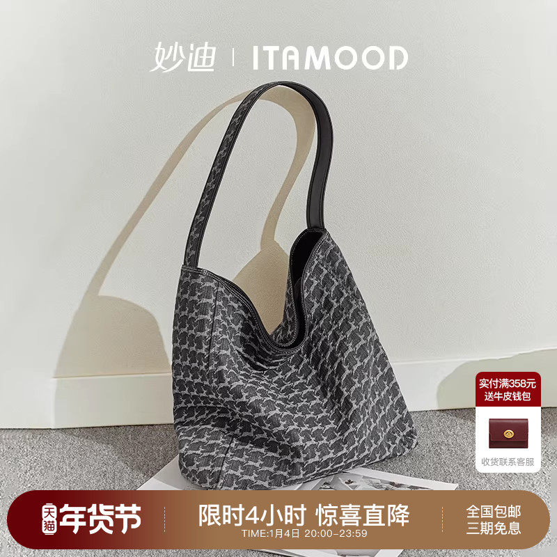 妙迪托特包新复古炭黑牛仔帆布包松弛大容量轻软包包腋下单肩包女