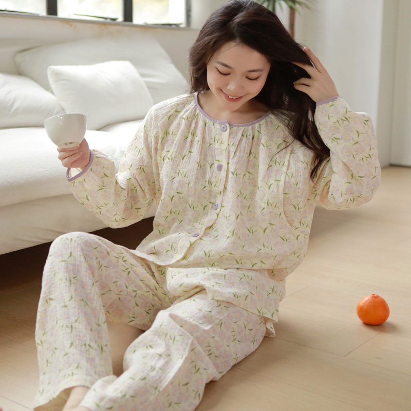 空气棉月子服秋冬季纯棉产后12月份全棉吸汗喂奶产妇哺乳孕妇睡衣