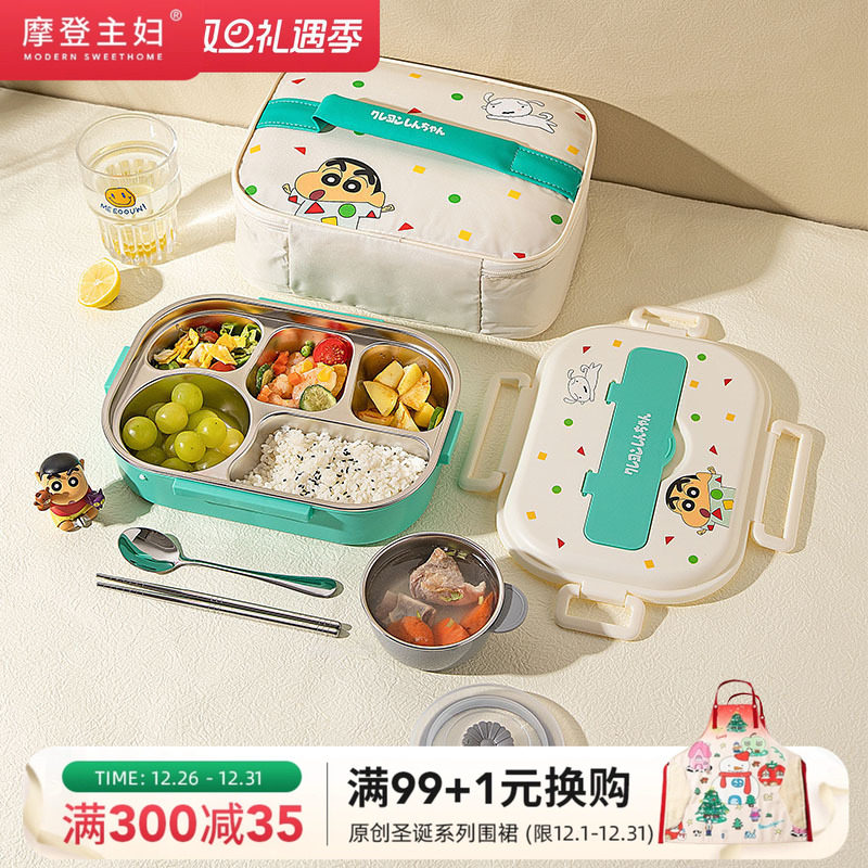 【摩登主妇&蜡笔小新】不锈钢保温饭盒小学生上学专用盒儿童餐盒