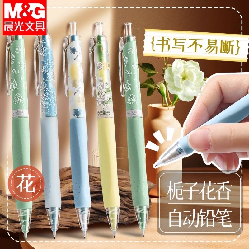 晨光夏日限定栀子花开优握写不断自动铅笔学生专用0.7不断芯自动笔0.5铅芯矫正握姿高颜值ins自带栀子花香味