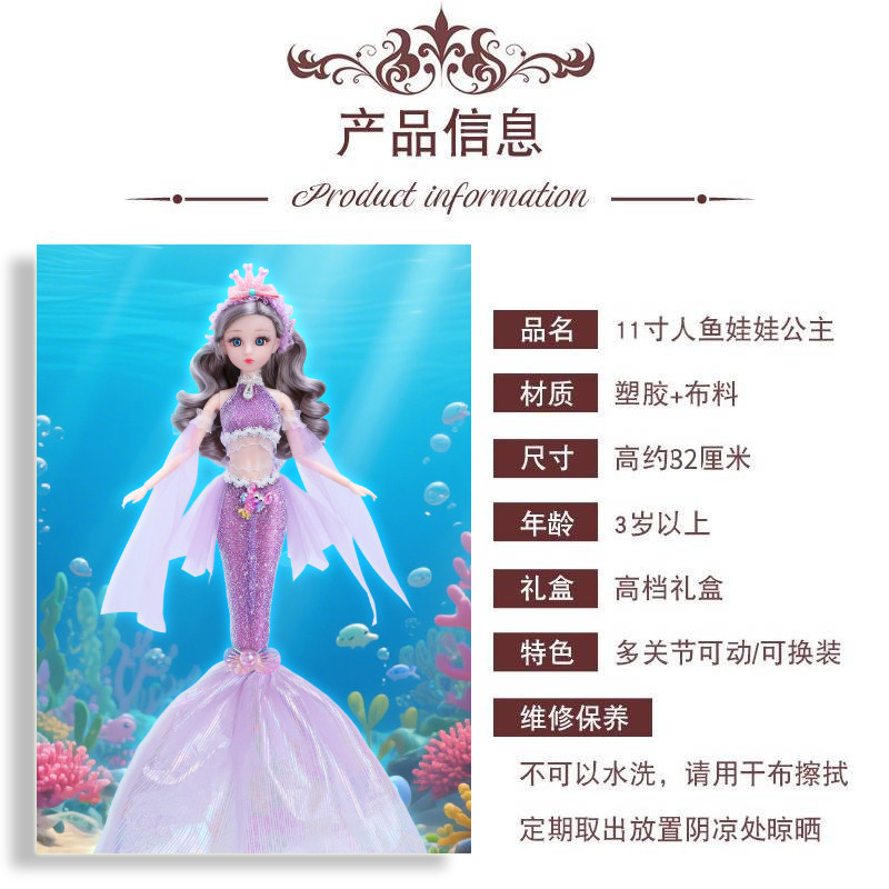 32厘米美人鱼公主洋娃娃儿童玩具女孩生日礼物玩偶经典礼盒套装