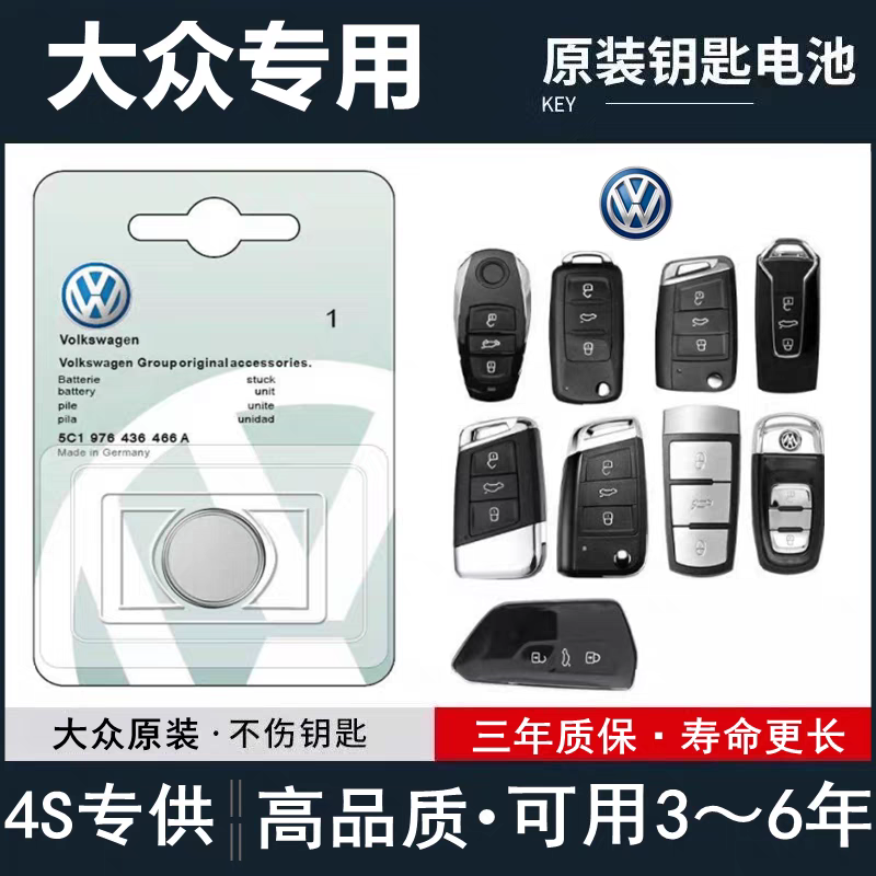 大众汽车钥匙电池原装朗逸plus高尔夫7速腾迈腾B8凌渡途观L新款cc帕萨特途昂探岳宝来一汽遥控器纽扣电子上汽