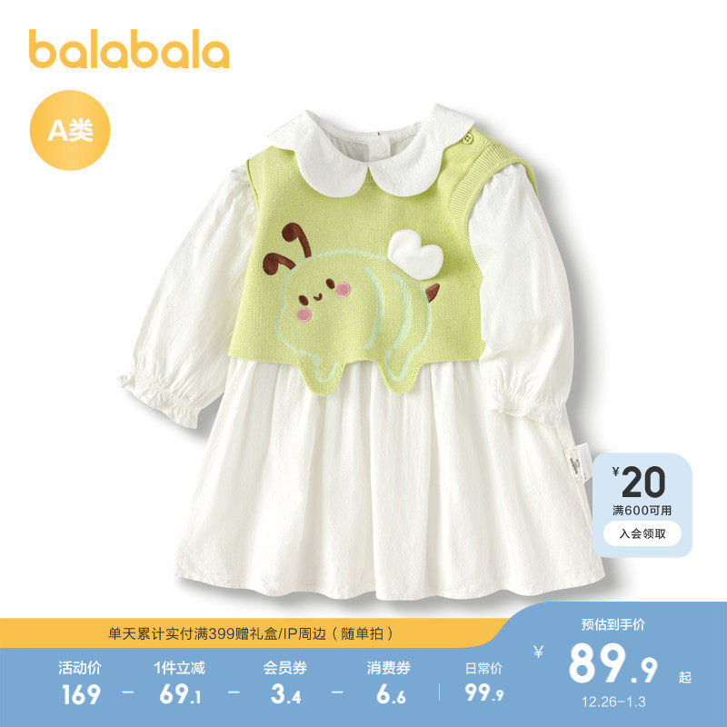 巴拉巴拉宝宝秋装婴童女童连衣裙子套装两件套休闲洋气时尚甜美萌