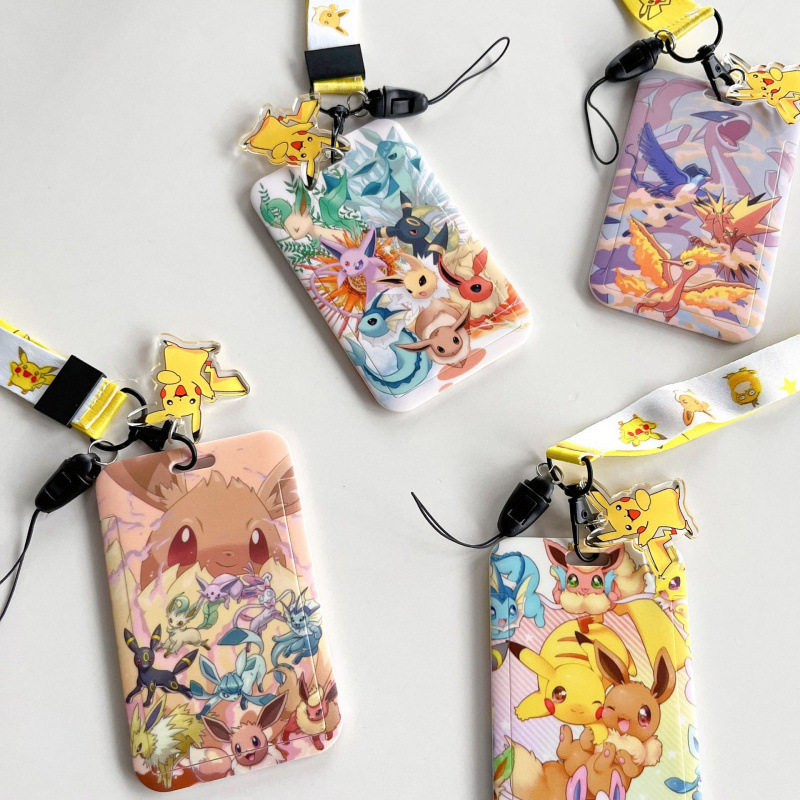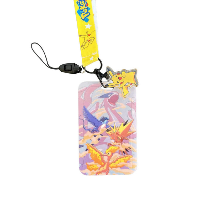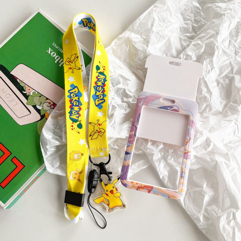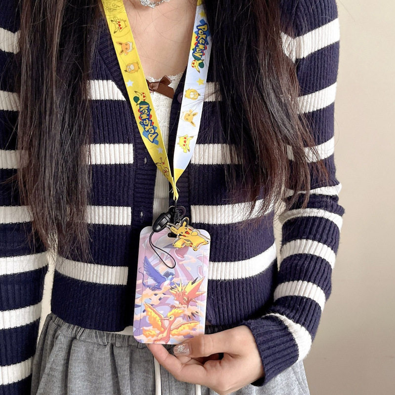 皮卡丘宝可梦卡通学生胸卡套长绳挂脖羊城通卡防丢门禁卡八达通套带挂绳校牌工厂牌钥匙扣卡套一体