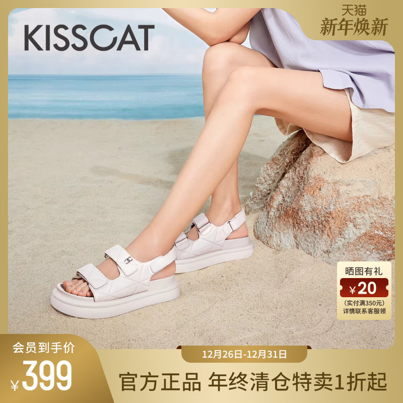 [美洋同款]接吻猫[面包小香风沙滩凉鞋]夏新魔术贴厚底运动凉鞋