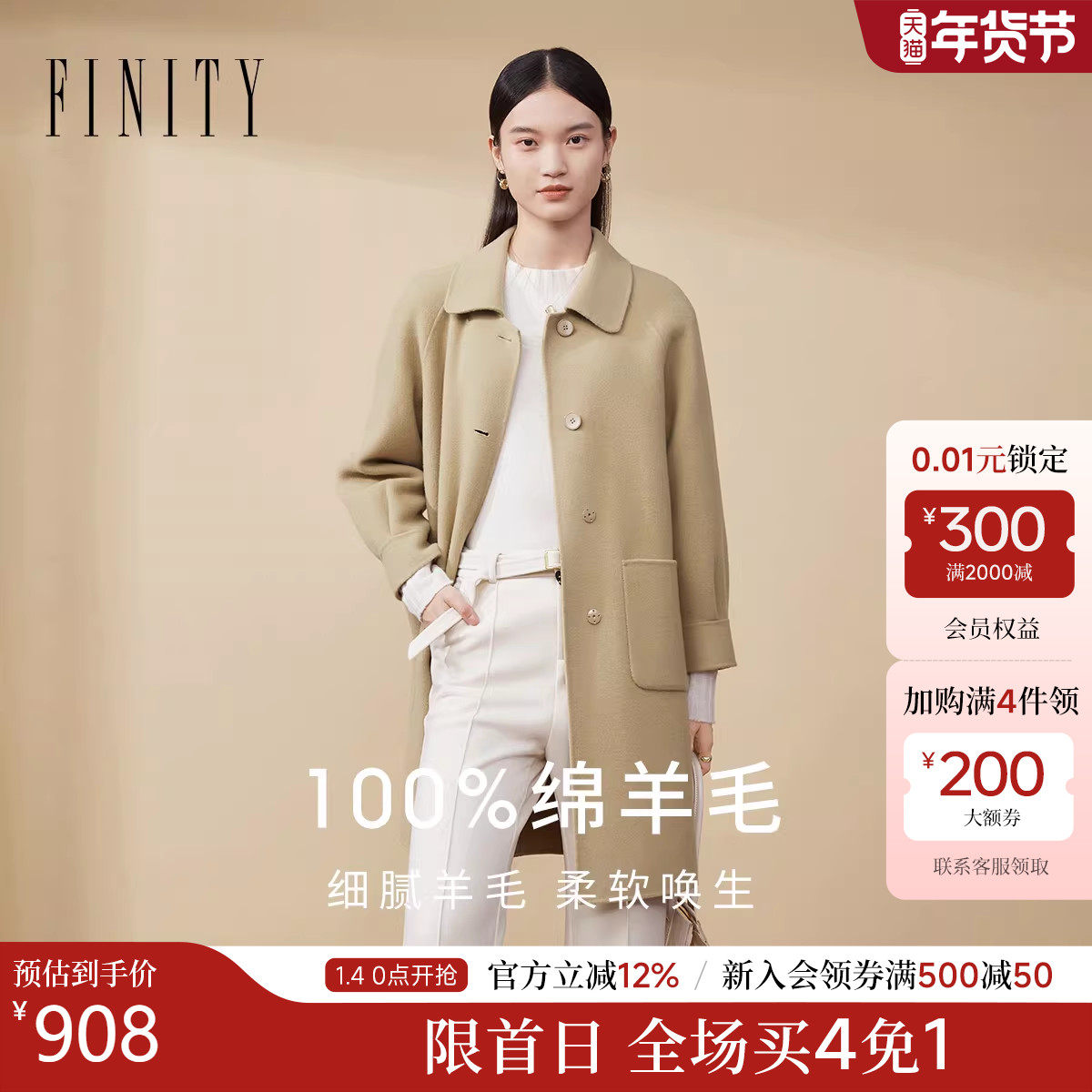 【纯羊毛】FINITY菲妮迪毛呢外套2025冬季新款双面呢长款大衣女