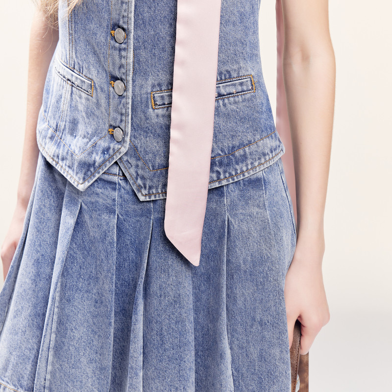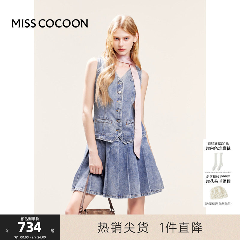 MISSCOCOON可可尼白鹿同款假两件马甲百褶连衣裙女2025秋季新款