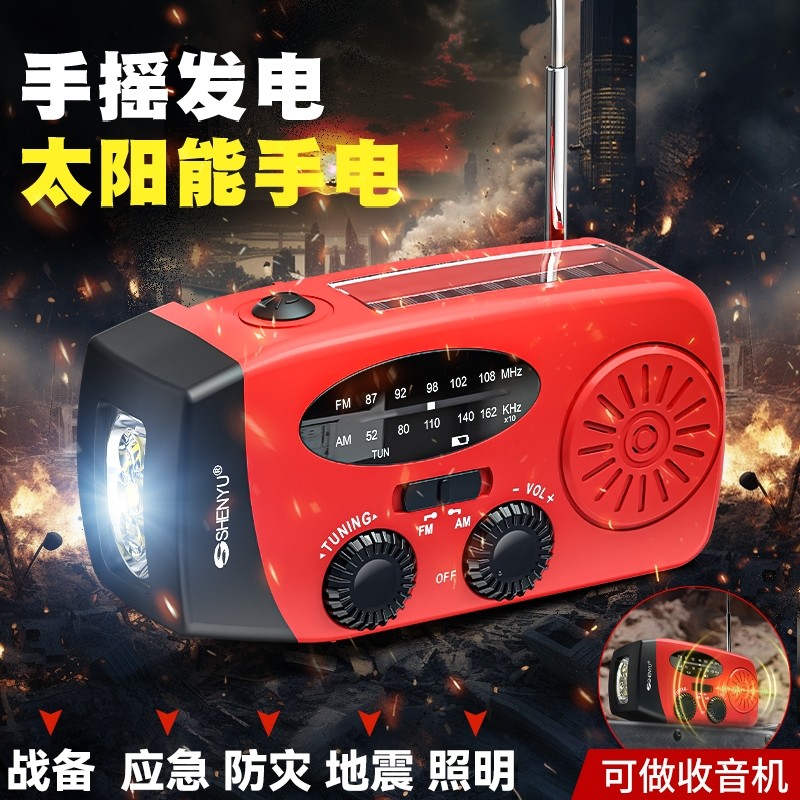 手摇发电太阳能收音机手电筒便携防灾照明户外多功能应急求生装备