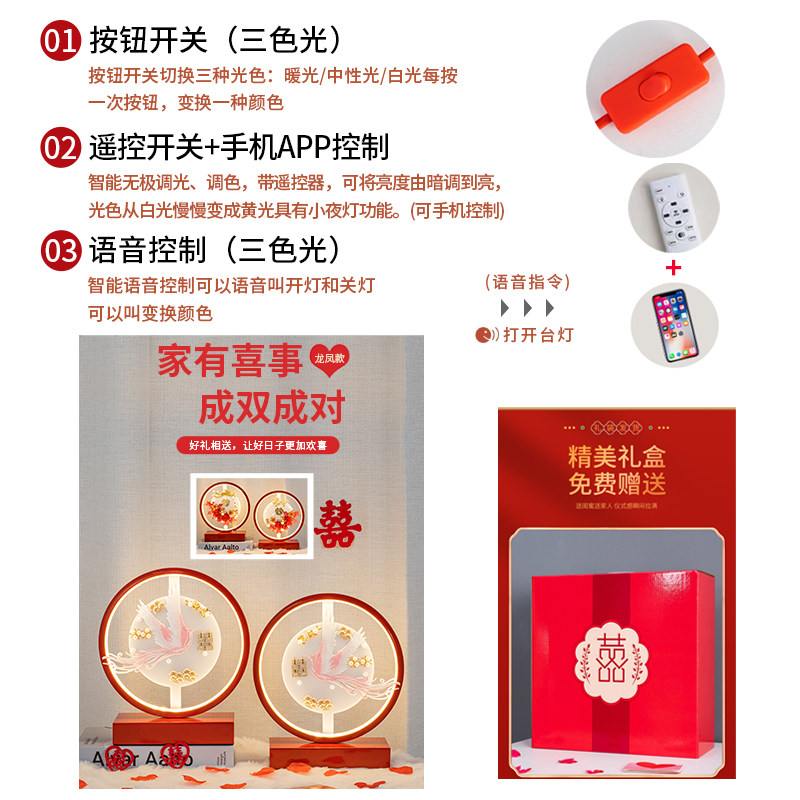 陪嫁新婚长明灯结婚一对高级婚房布置红台灯床头灯结婚礼物送新人
