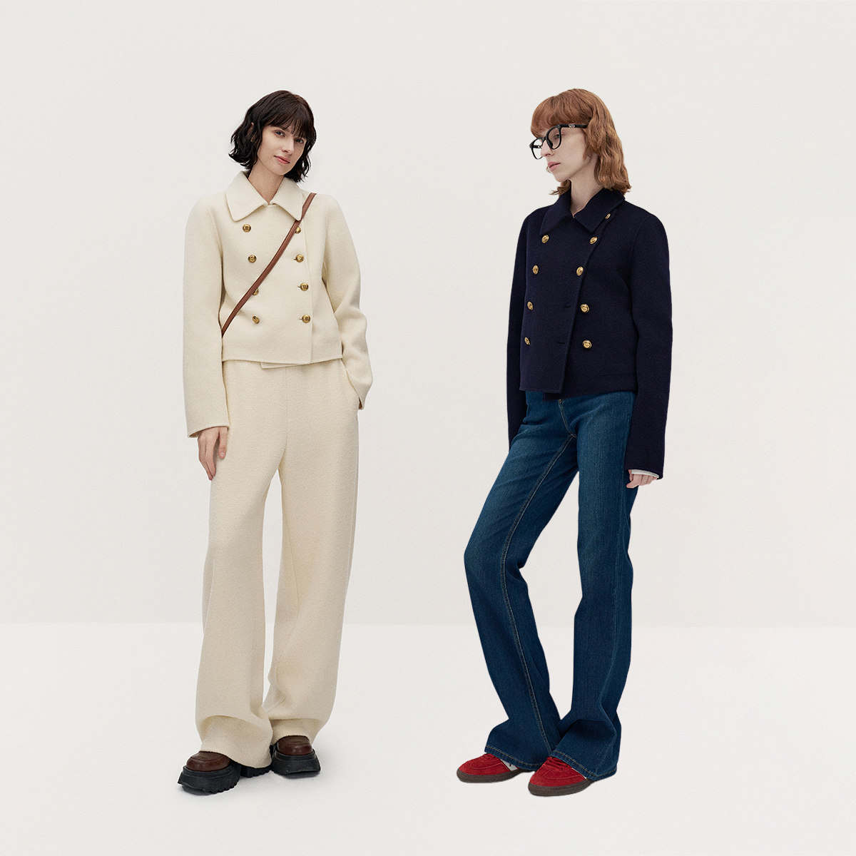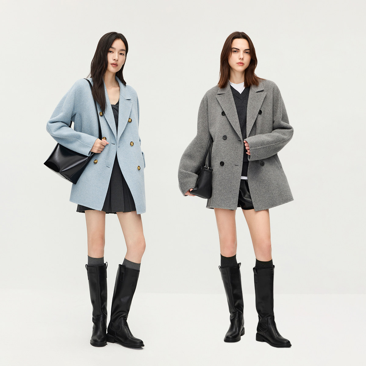 【季末折扣】欧时力 羊毛双面呢复古排扣外套大衣简约法式25秋冬