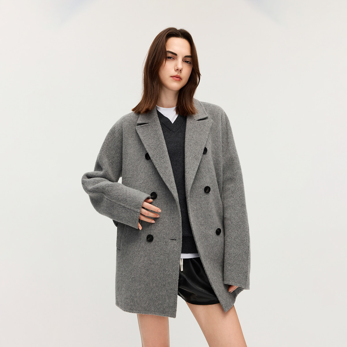 反季双面羊毛大衣女中长款2025新款西装领双排扣宽松显瘦毛呢外套