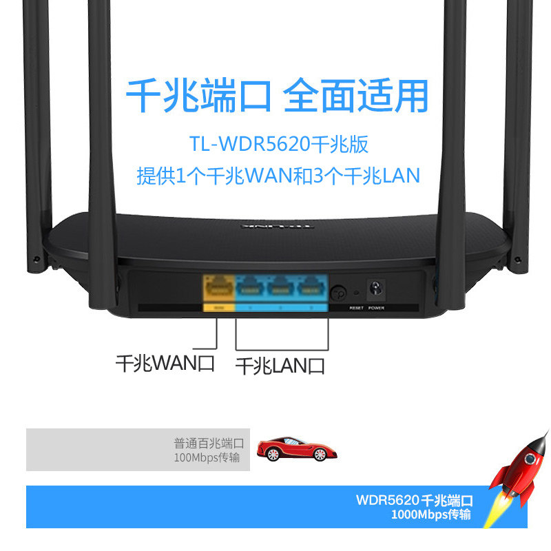 TP-LINK 双千兆无线路由器 千兆端口家用高速wifi穿墙王tplink双频5G大户型穿墙宿舍 易展mesh大功率 WDR5620