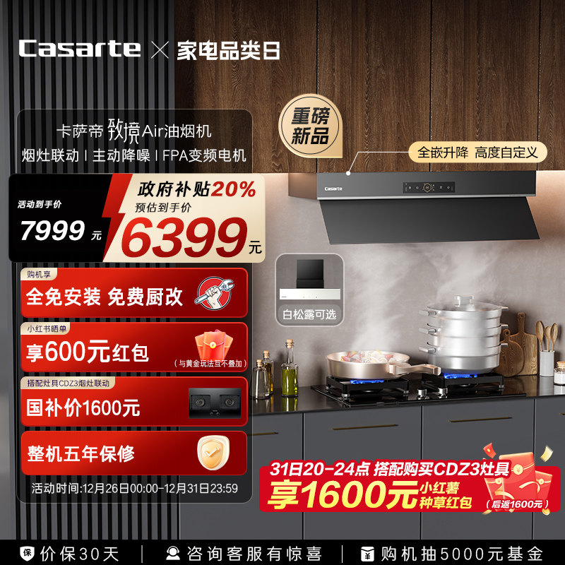 [旗舰新品]卡萨帝致境抽油烟机Q9钢琴黑变频升降家用厨房以旧换新