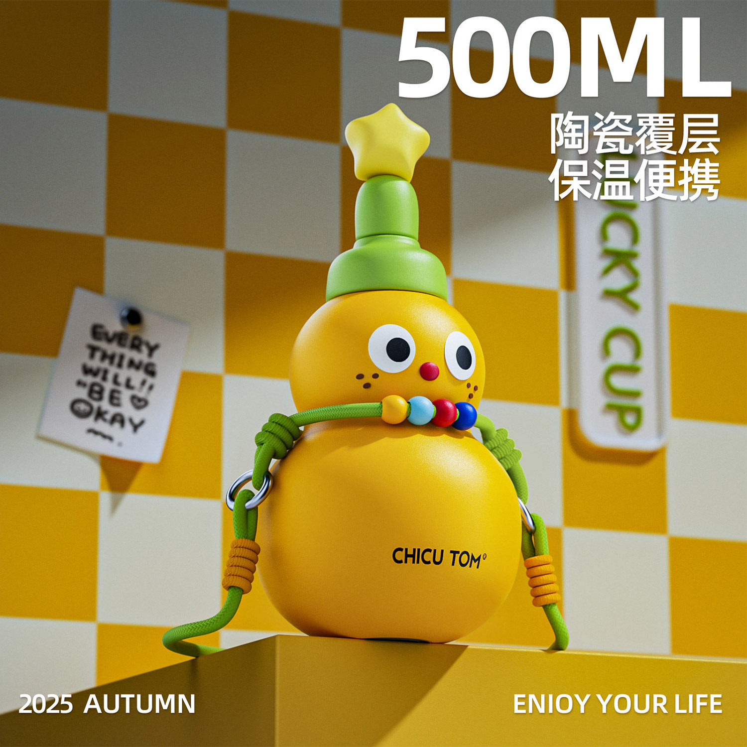 GOOM保温杯2025新款情侣高颜值大容量吸管水杯子提绳生日老师礼物
