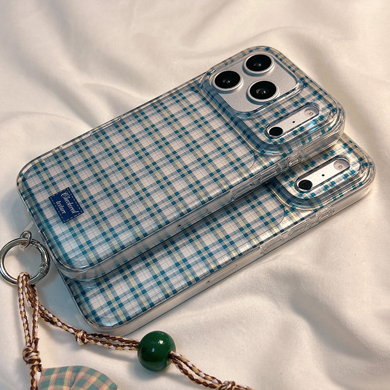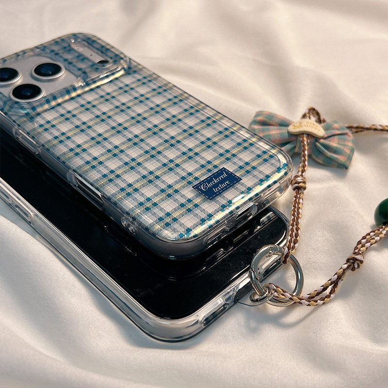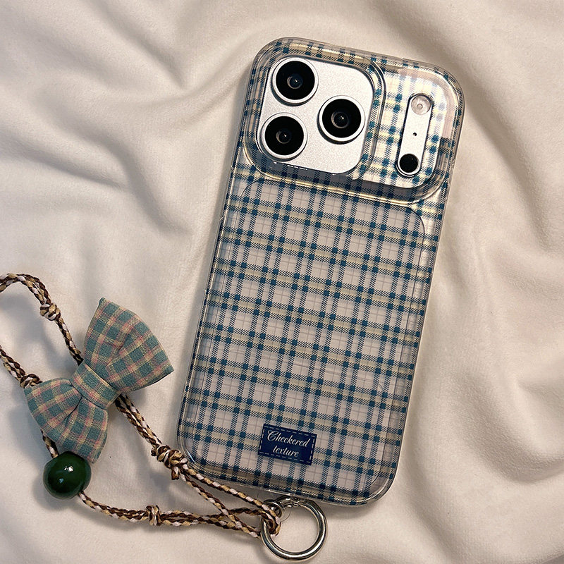 日系ins格纹蝴蝶结挂绳适用苹果16promax手机壳15pro新款iphone13小众14pro女款17硅胶双层17pro全包软手机套
