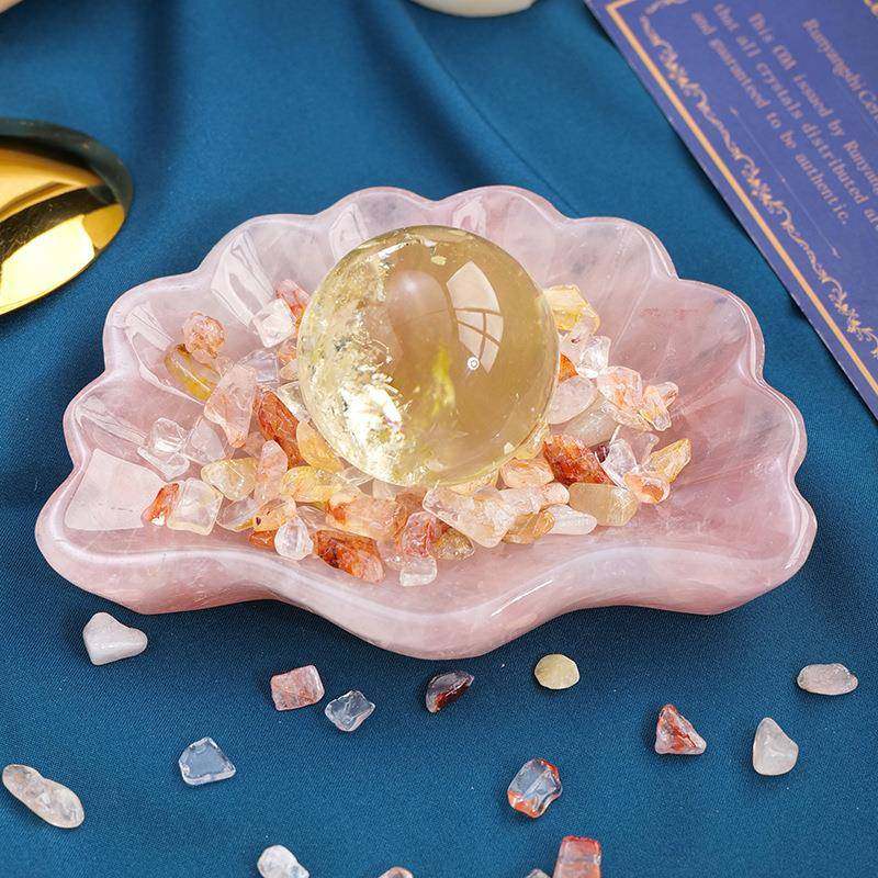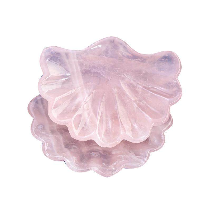 天然粉水晶贝壳水晶碗粉晶芙蓉晶凤尾容器装饰碗水晶工艺品