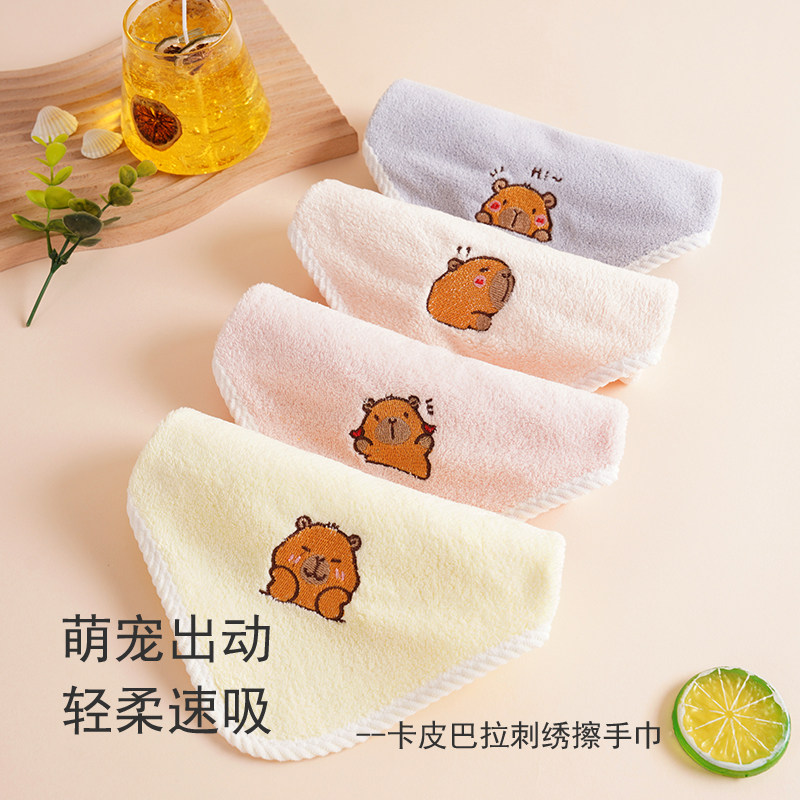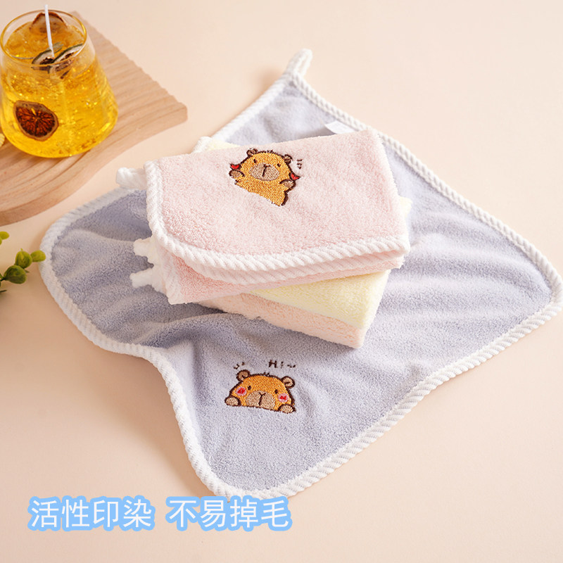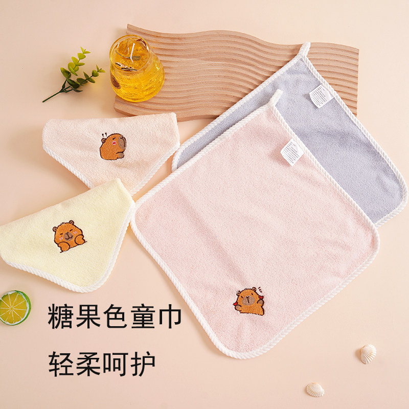 卡皮巴拉方巾珊瑚绒儿童洗脸巾柔软幼儿园擦手帕可爱可挂式小毛巾