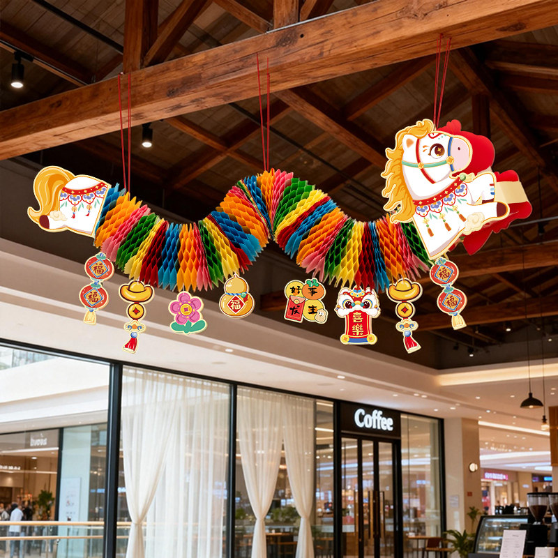 新年过年装饰挂件2026马年春节年味贺年挂饰店铺氛围布置拉花吊饰