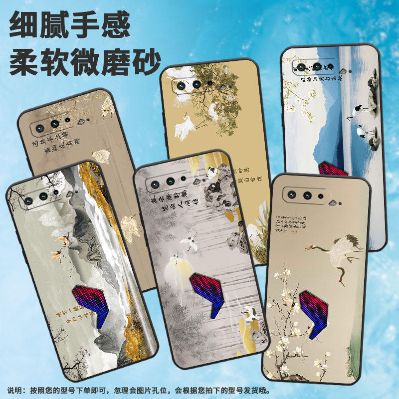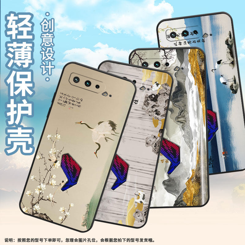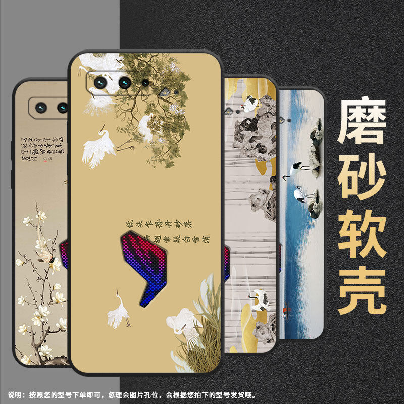 适用rogphone5手机壳rog游戏手机3飞鹤rog游戏手机5s竹林风景防摔磨砂创意轻薄个性保护套水墨花鸟软壳高级感