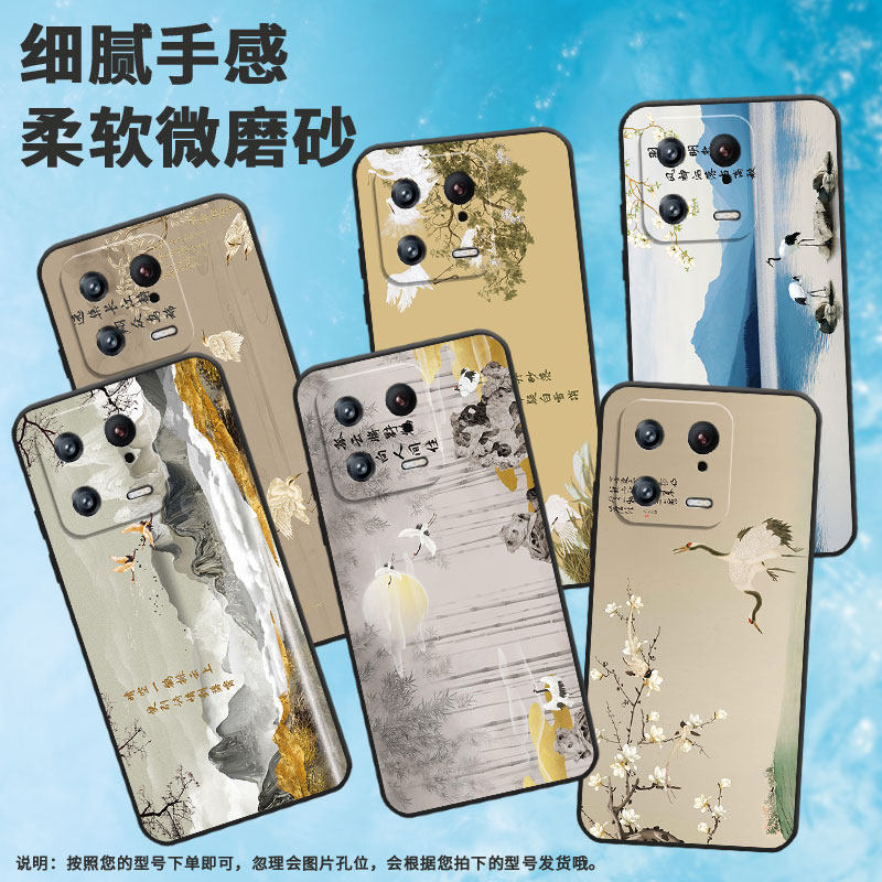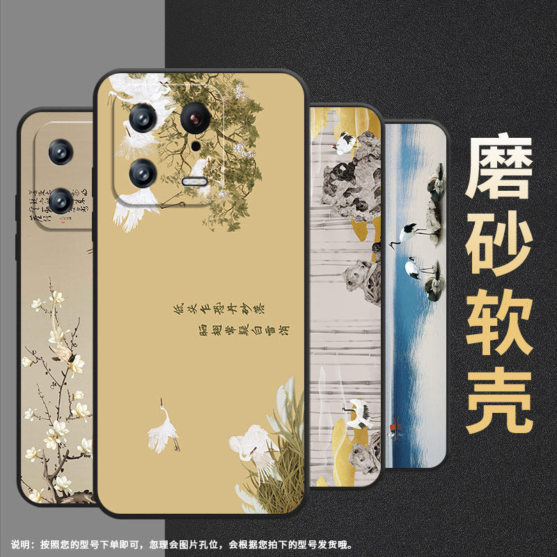 适用小米10手机壳15pro/13/10s磨砂14pro中国风10ultra软壳10pro轻薄11耐脏12保护套M2001J2C耐磨飞鹤in风