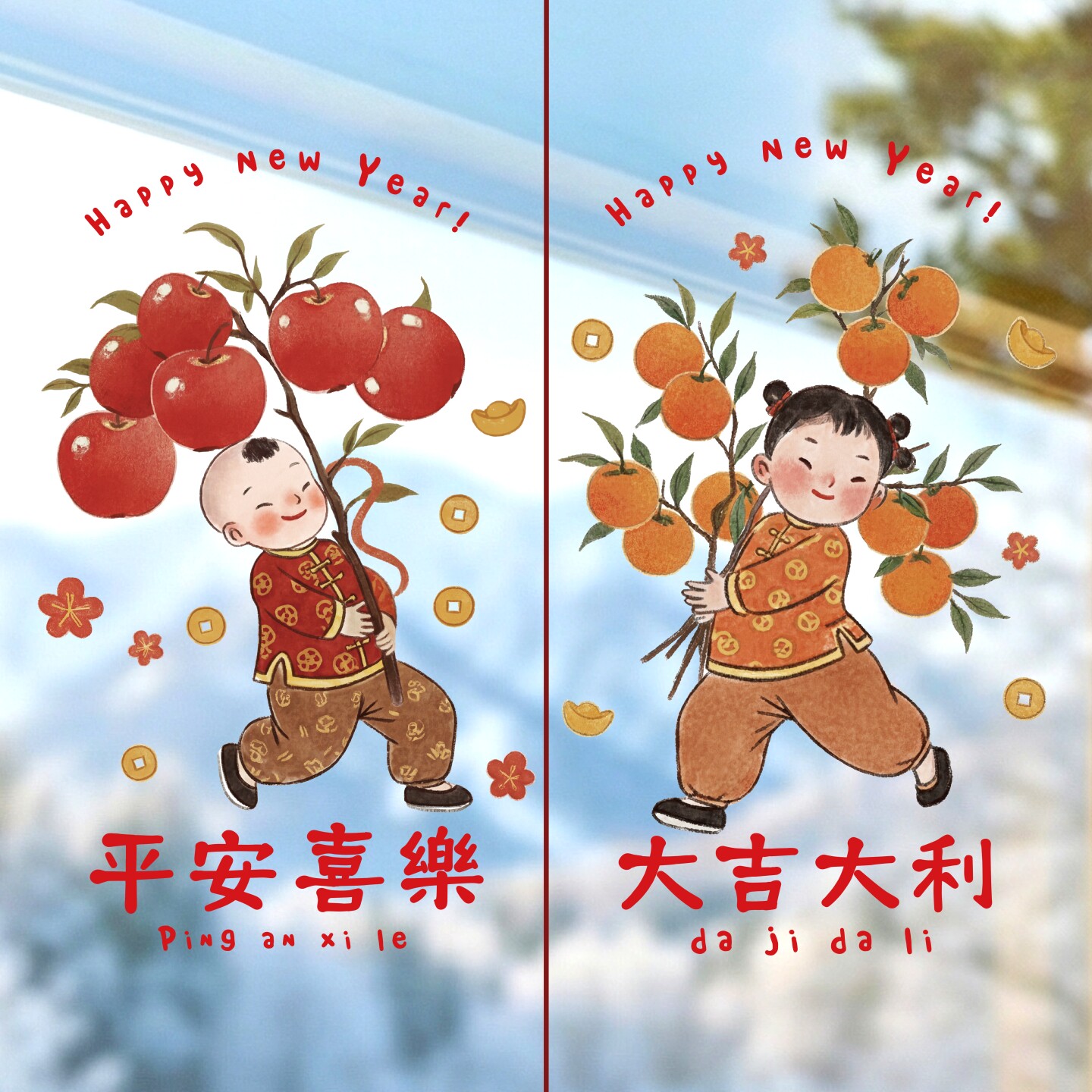 2026新年窗花马年装饰新款玻璃门贴纸静电橱窗贴春节氛围布置贴画